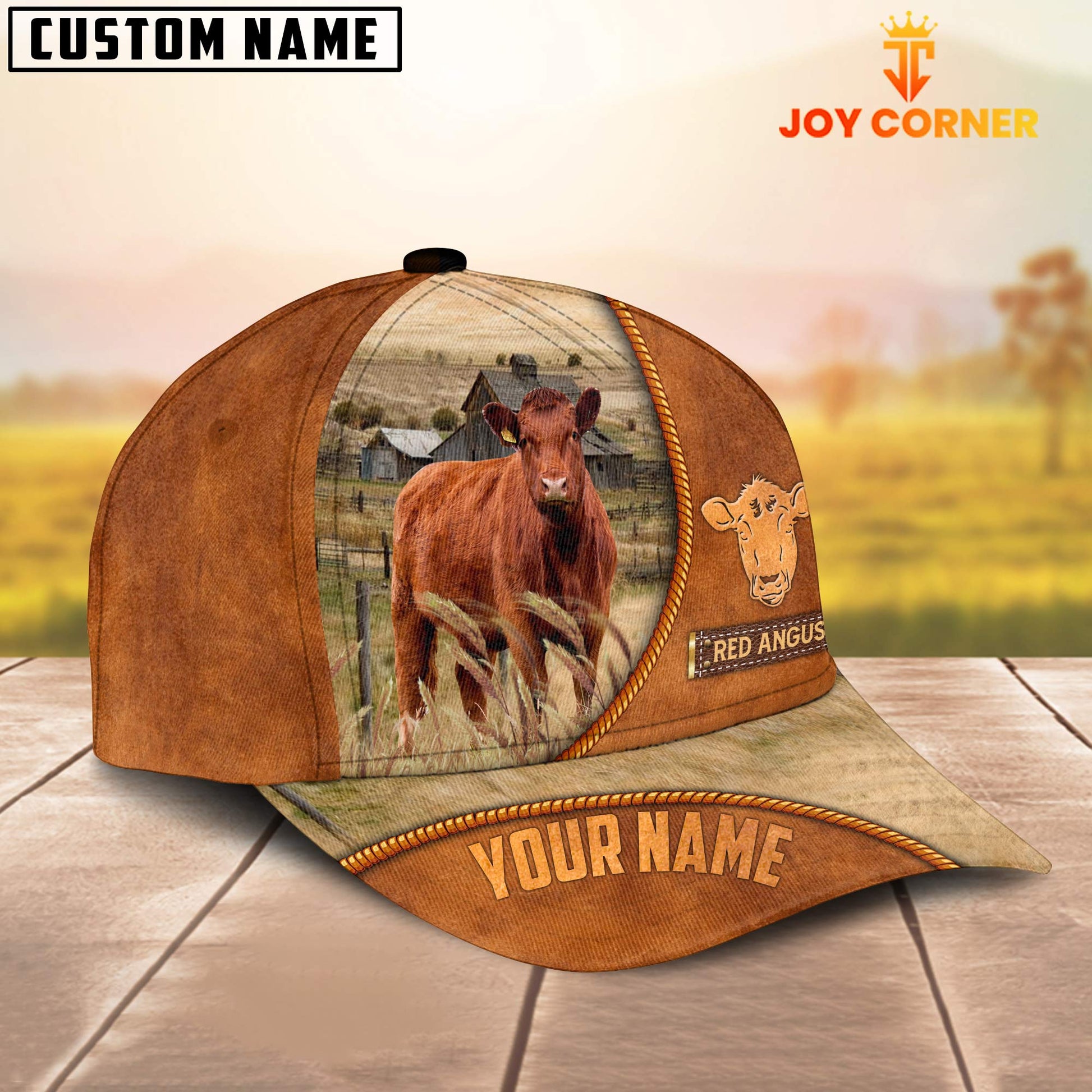 Uni Custom Name Red Angus Leather Pattern Cap TT3