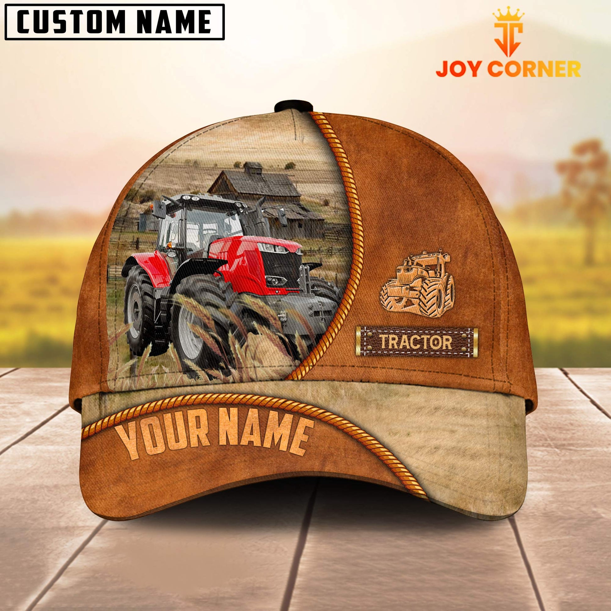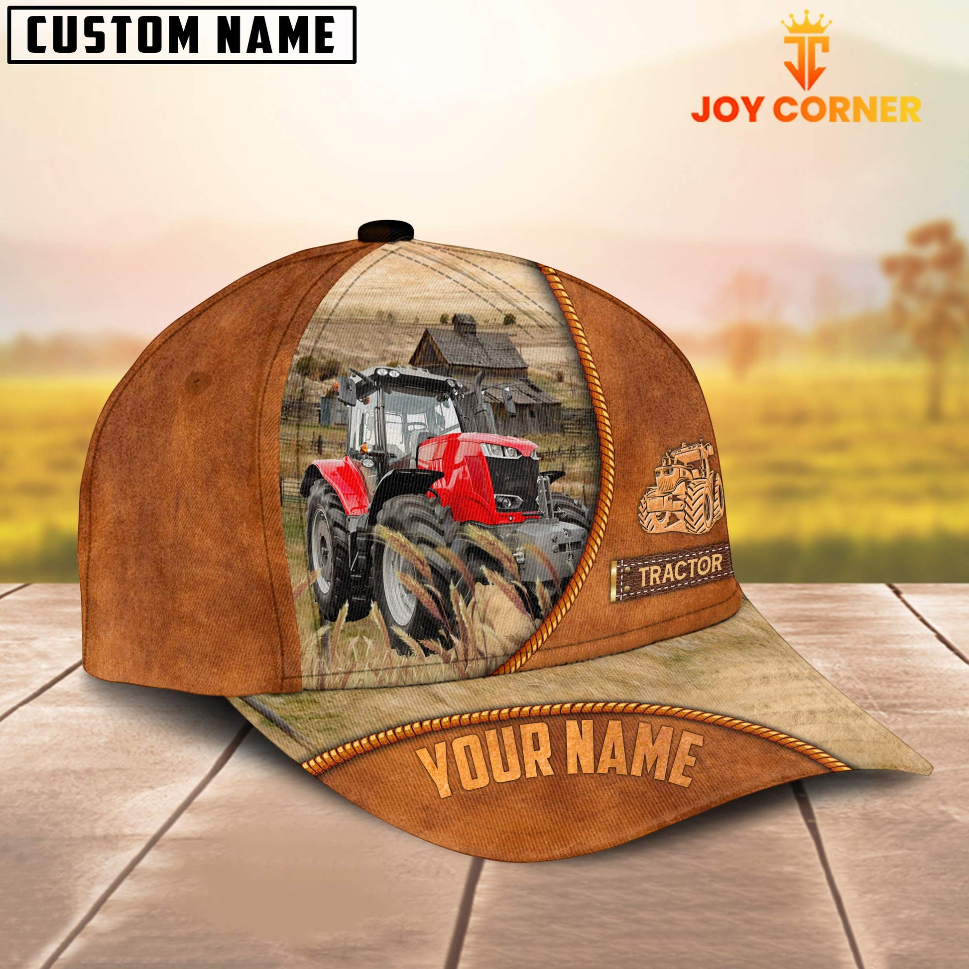 Uni Custom Name Red Tractor Leather Pattern Cap TT14