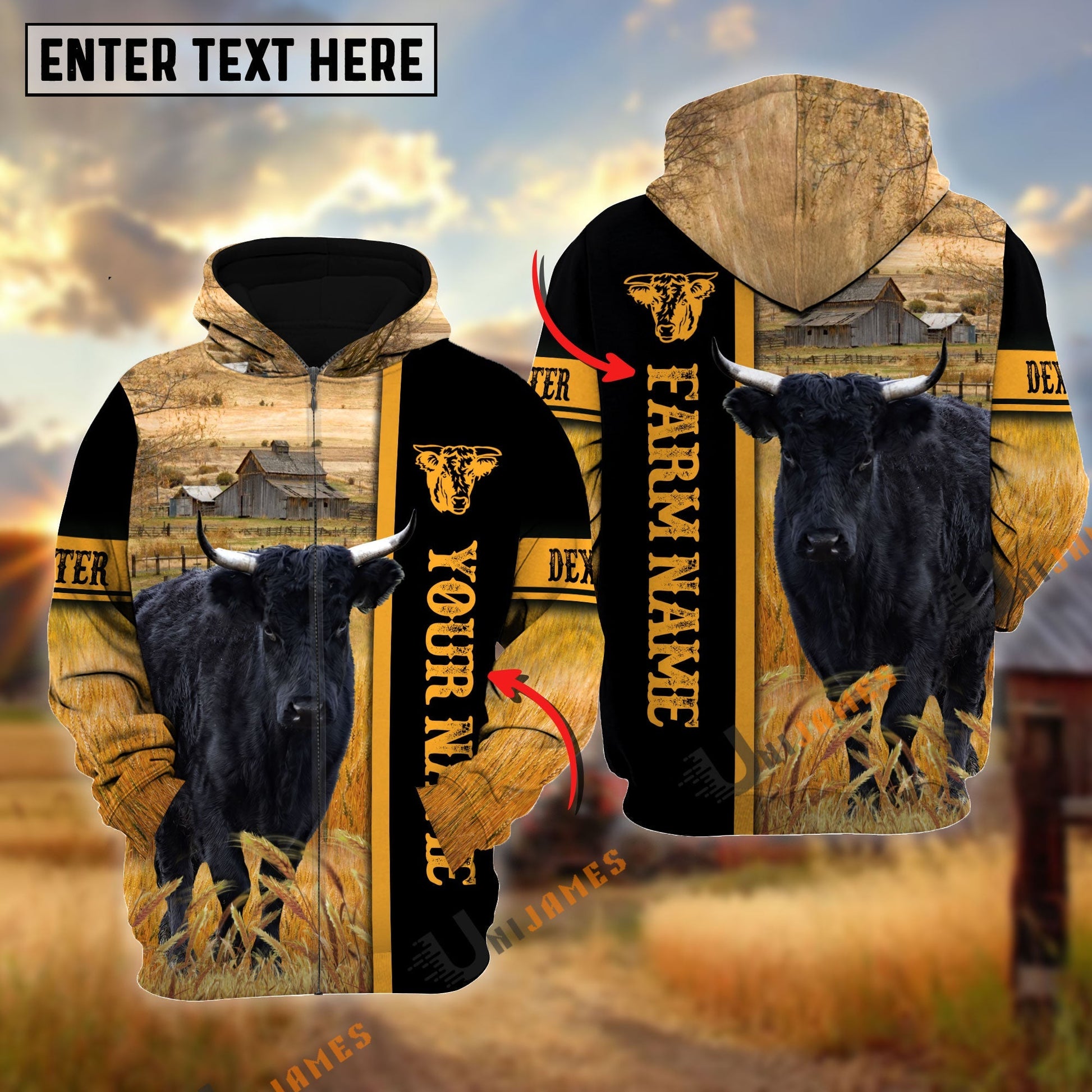 Uni Dexter Autumn Farming Personalized Name, Farm Name 3D Hoodie