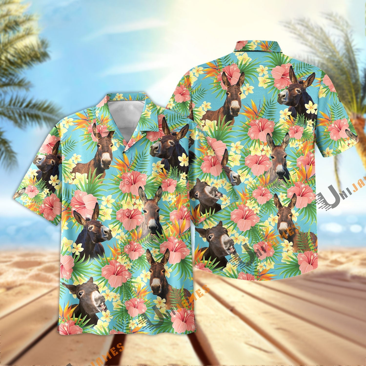 Uni Donkey Tropical Plants Leaves 3D Hawaiian Shirt