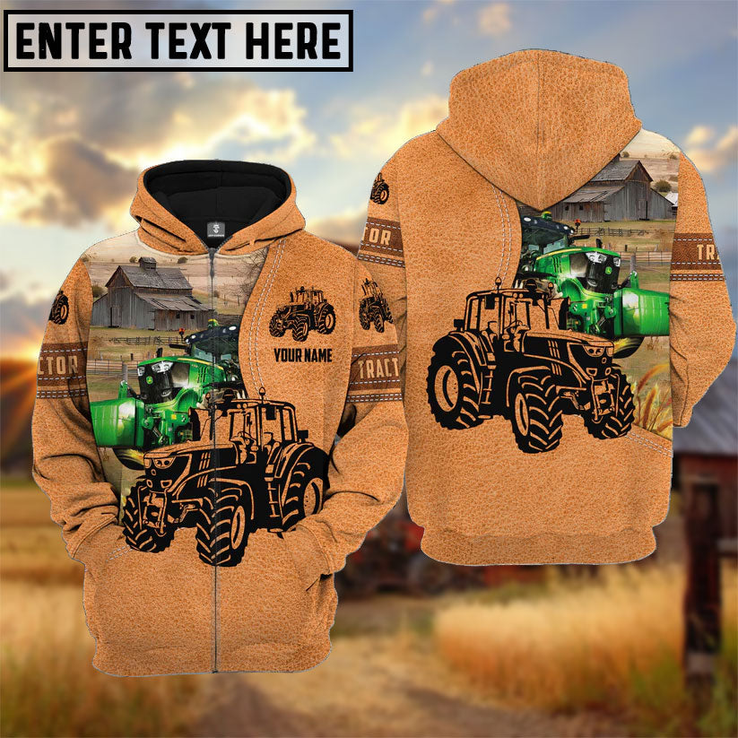 Uni Farm Personalized Name Tractor Light Brown Pattern 3D Hoodie