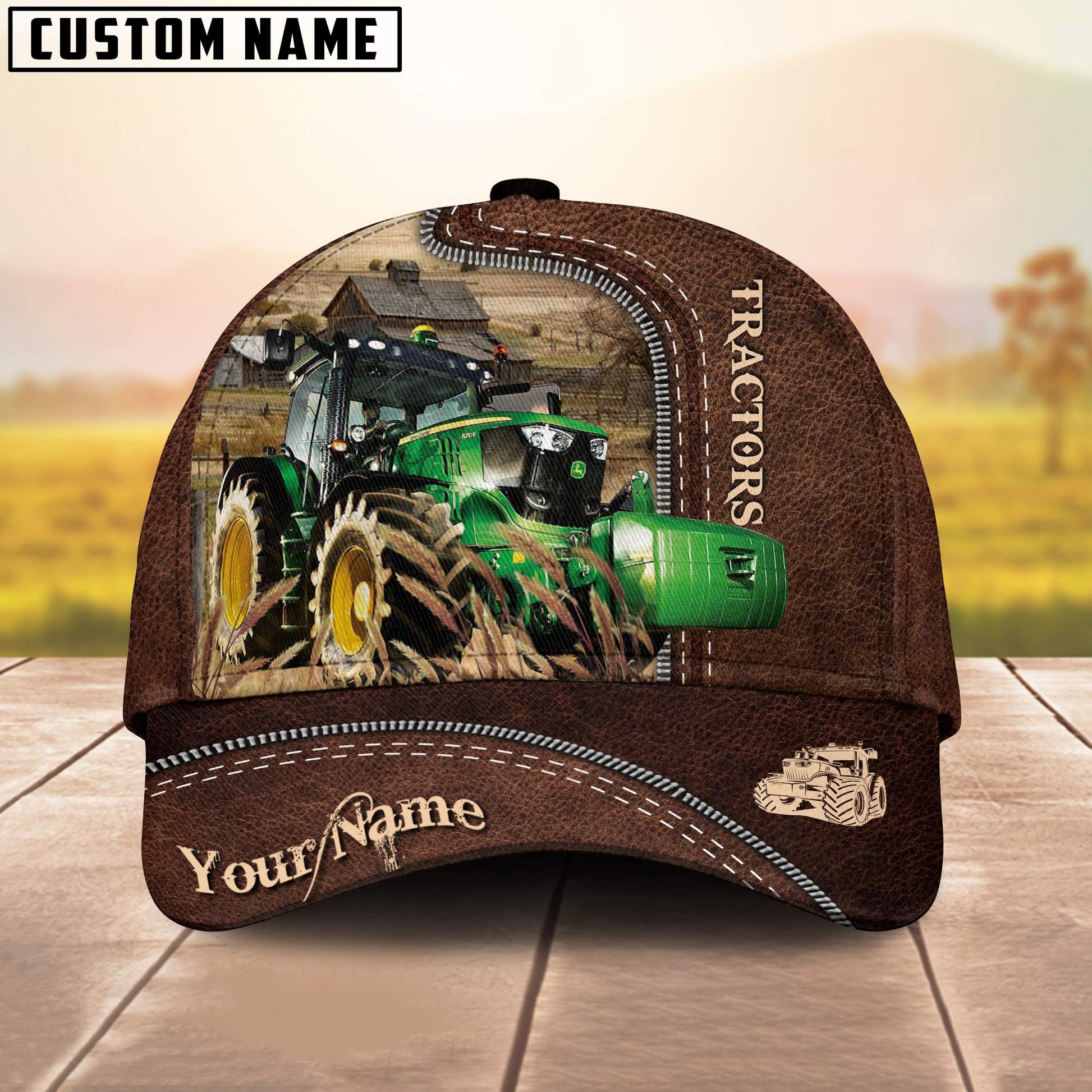 Uni Farm Tractors Customized Name Leather Pattern Cap