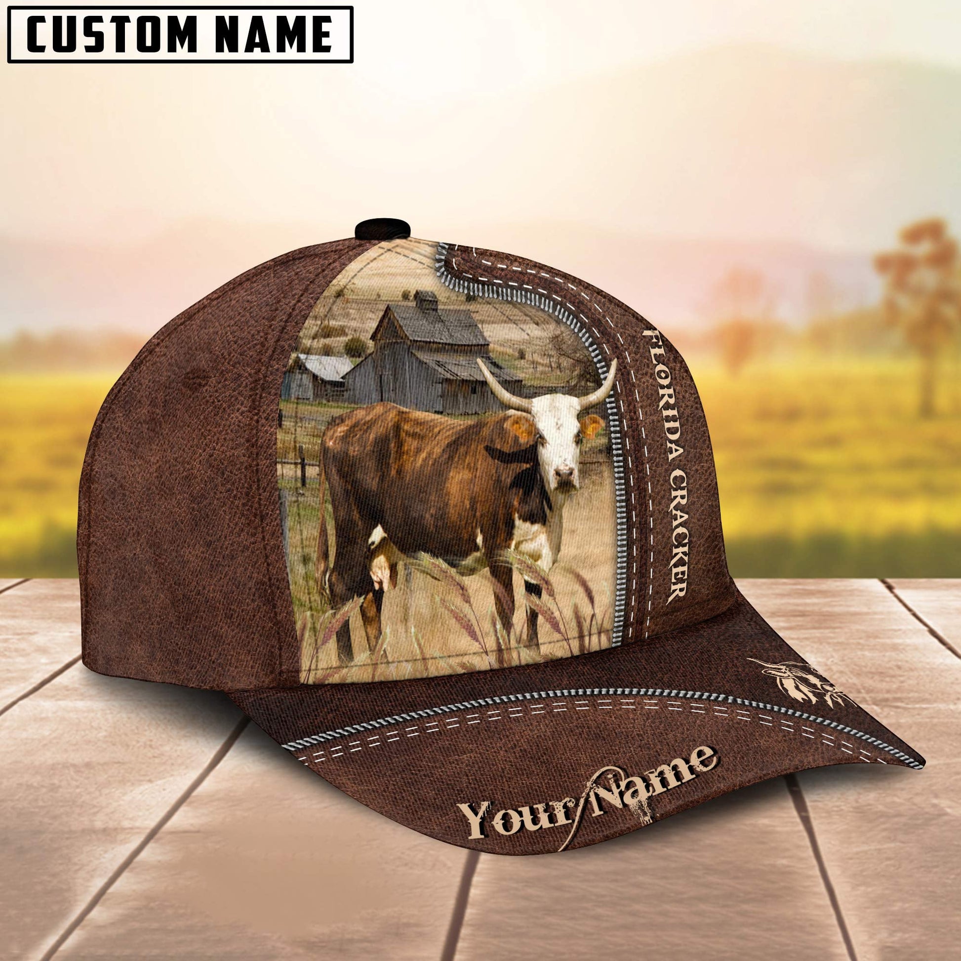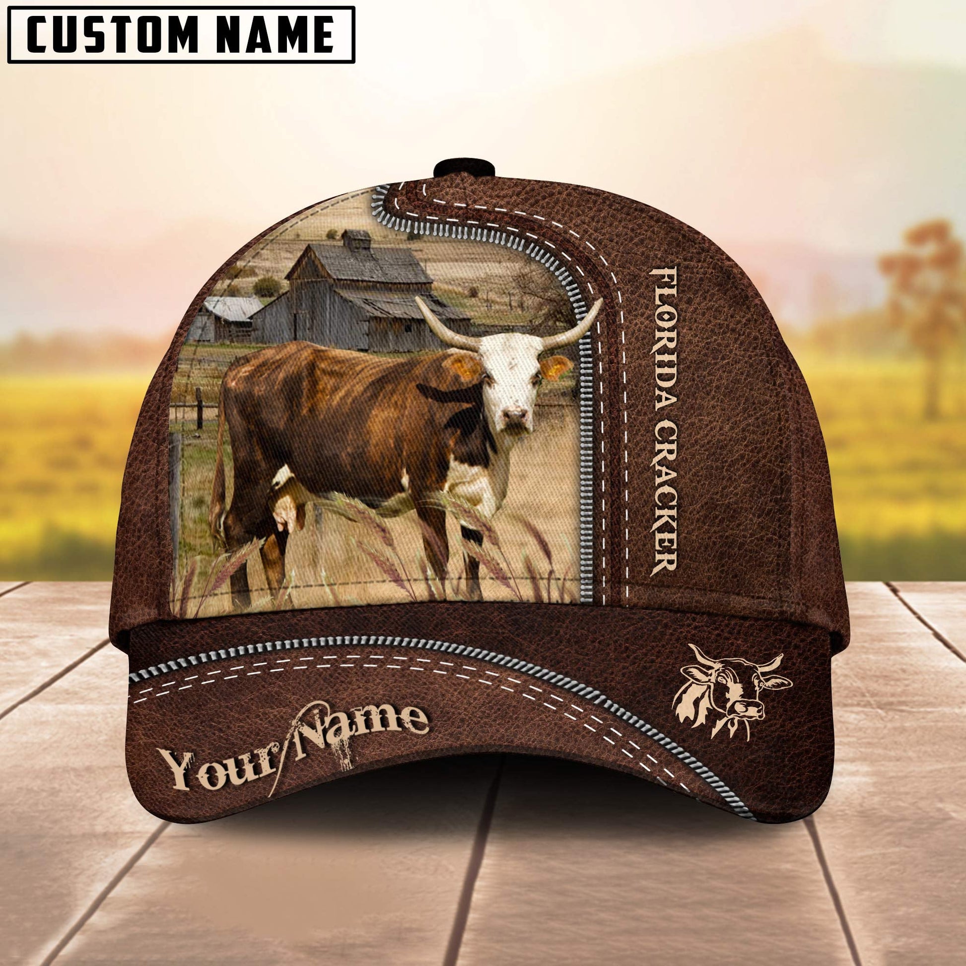 Uni Florida Cracker Cow Customized Name Leather Pattern Cap