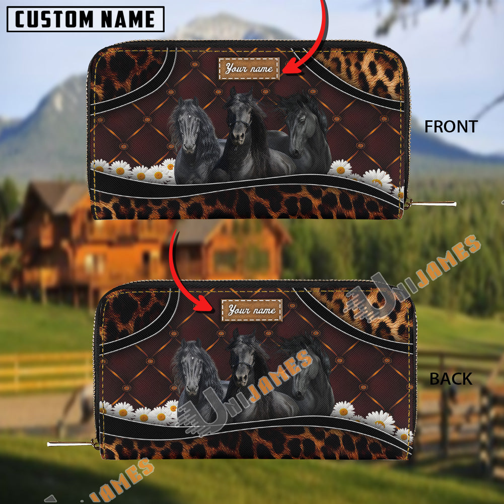 Uni Friesian Happiness Sunflower Custom Name 3D Leather Clutch