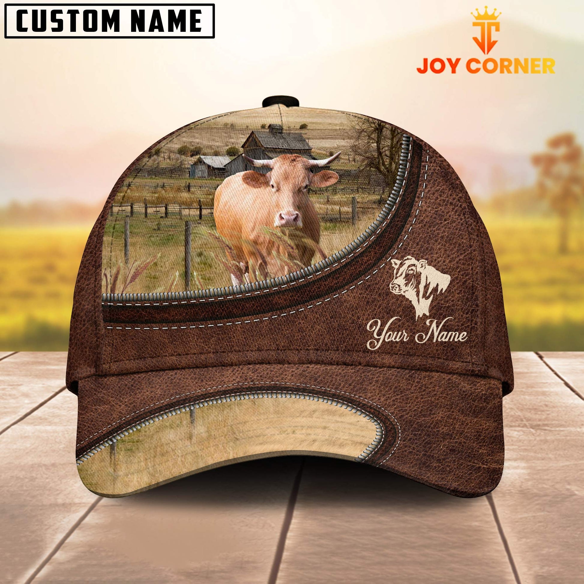 Uni Gelbivieh On The Farm Customized Name Leather Pattern Cap