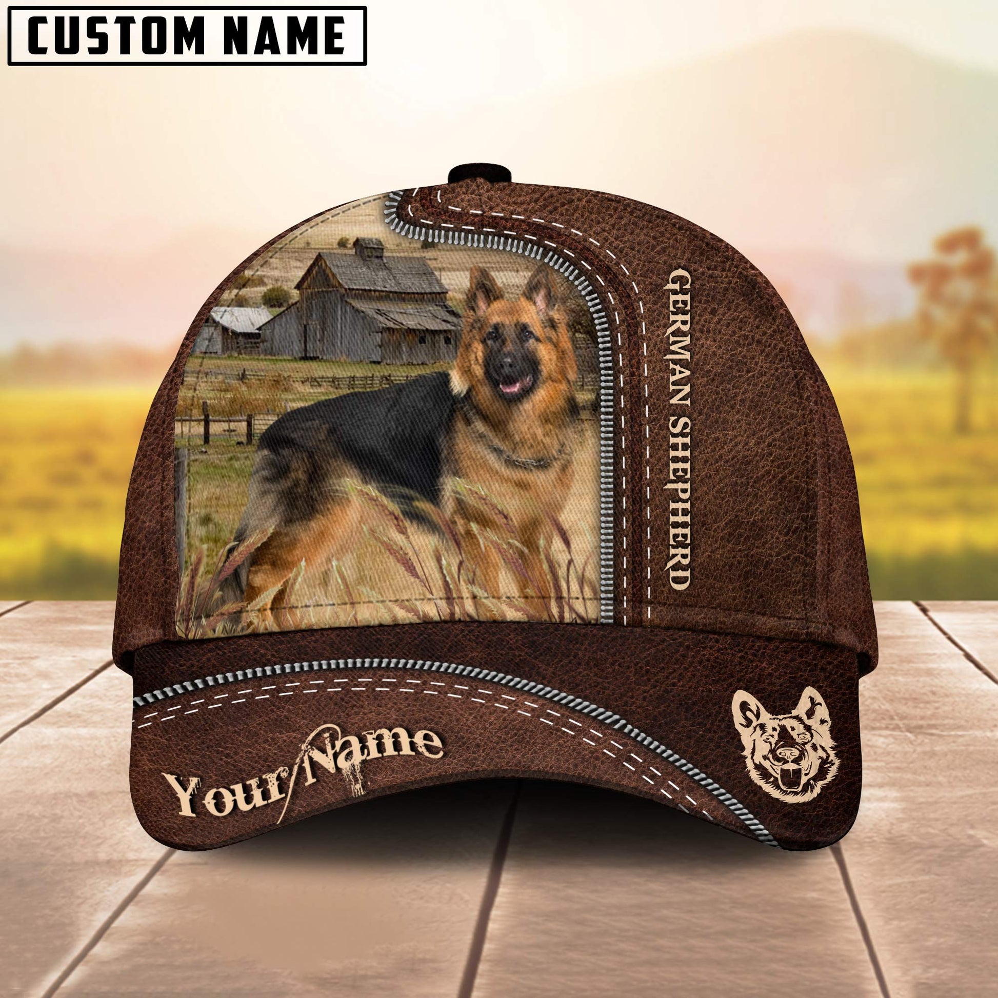 Uni German Shepherd Customized Name Leather Pattern Cap
