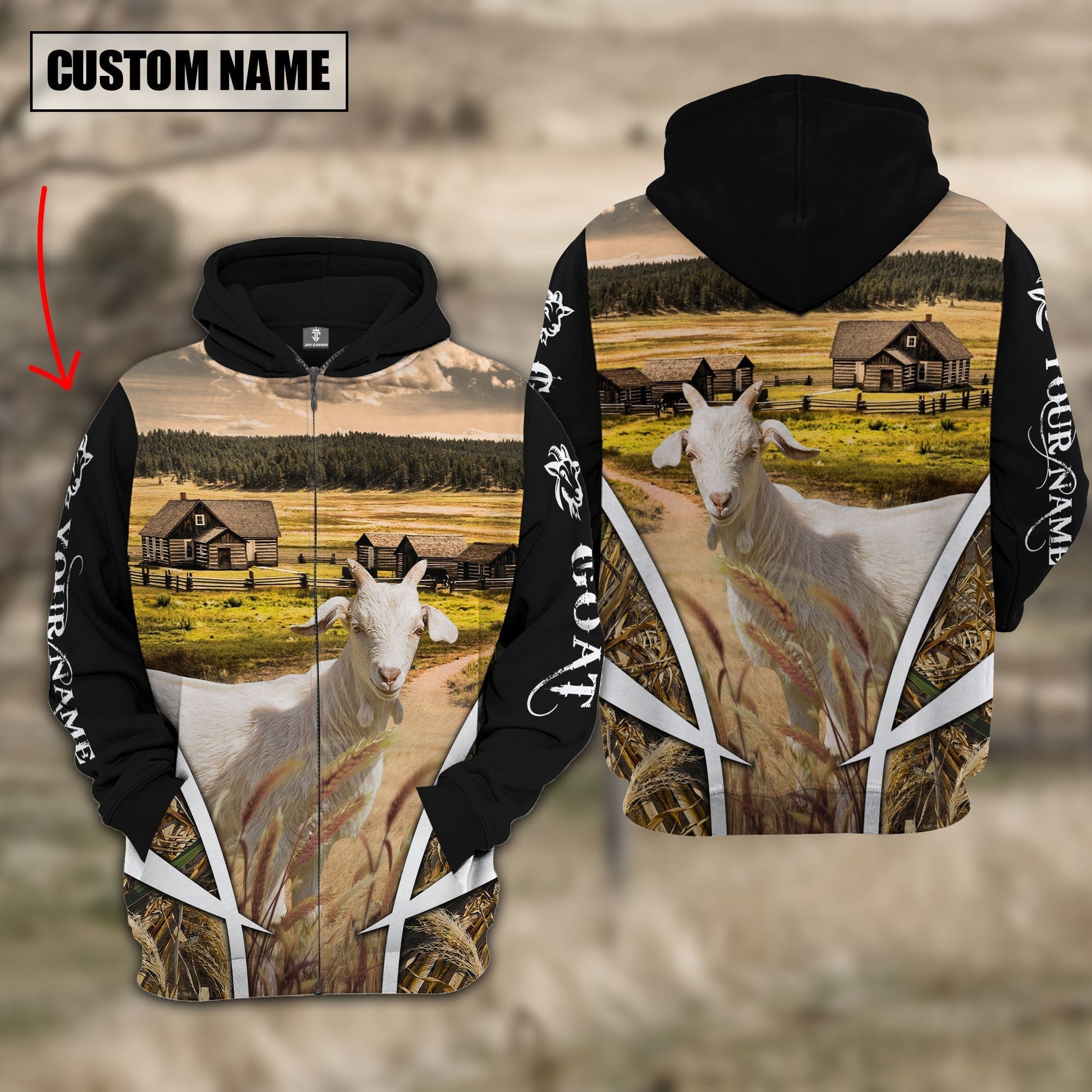 Uni Goat Custom Name Meadow Pattern Black Hoodie