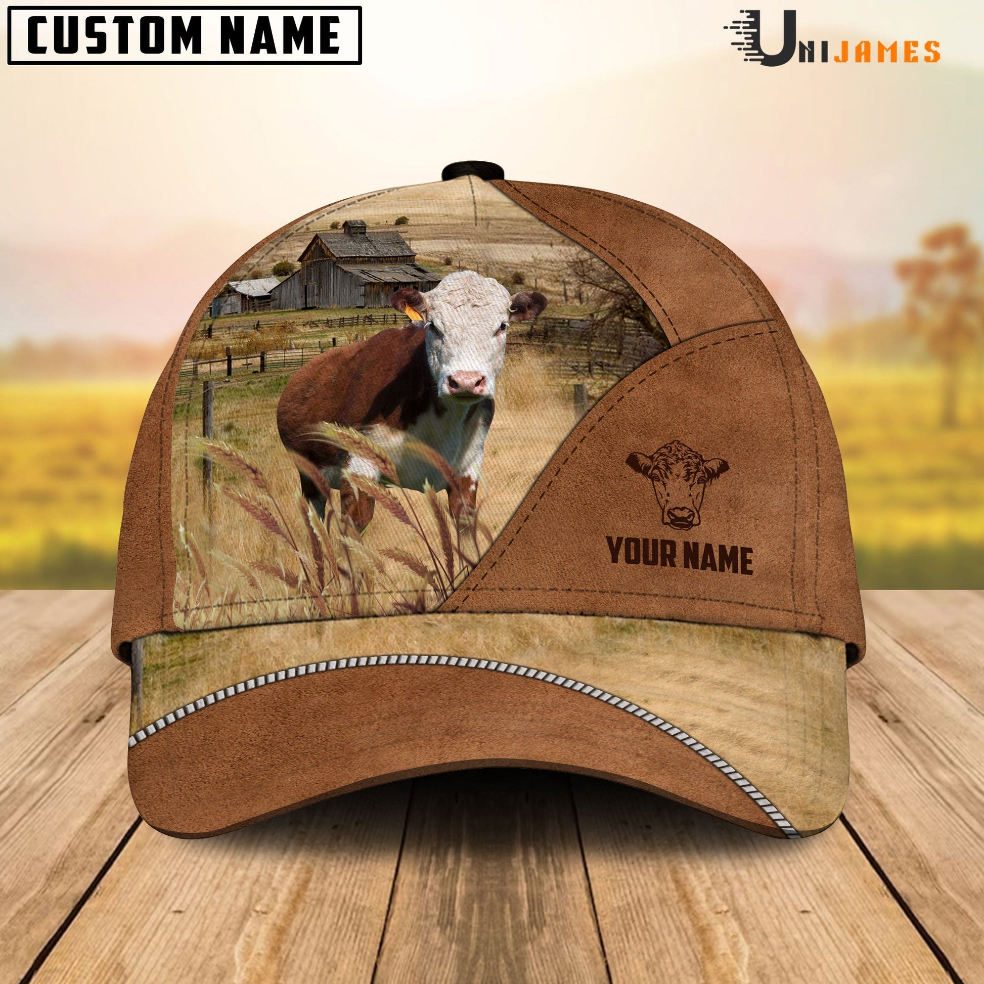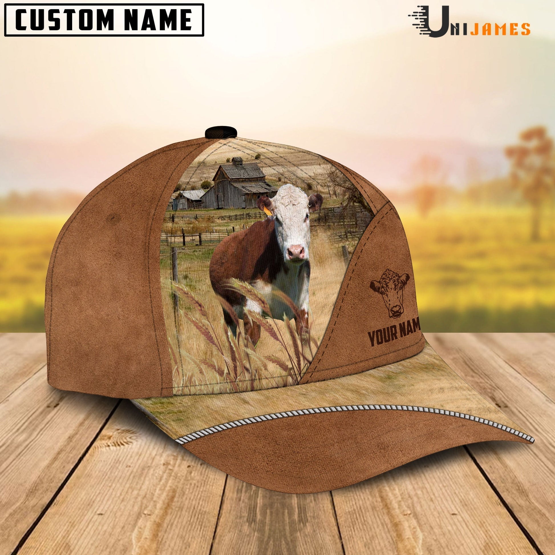 Uni Hereford Cattle Personalized Name Brown Farm Cap