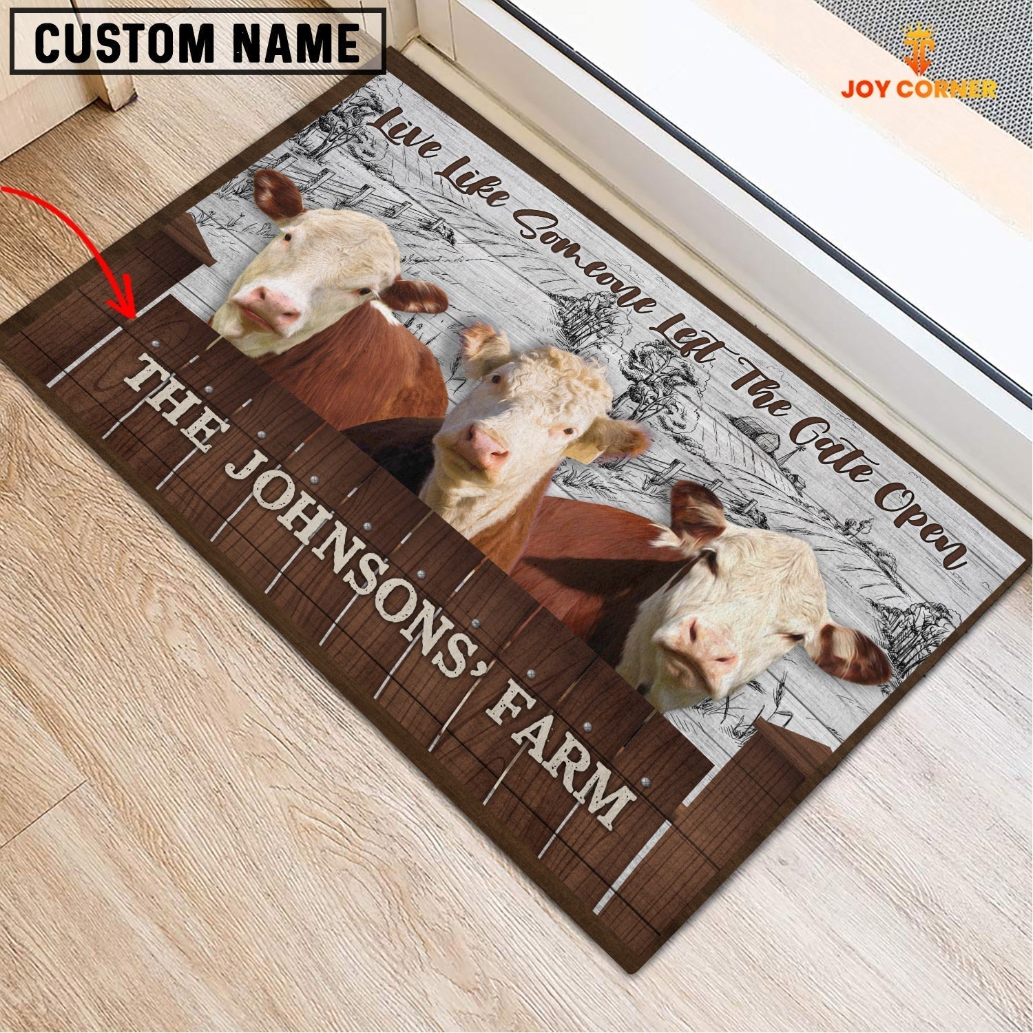 Uni Hereford Custom Name - Live Like Someone Left The Gate Open Doormat