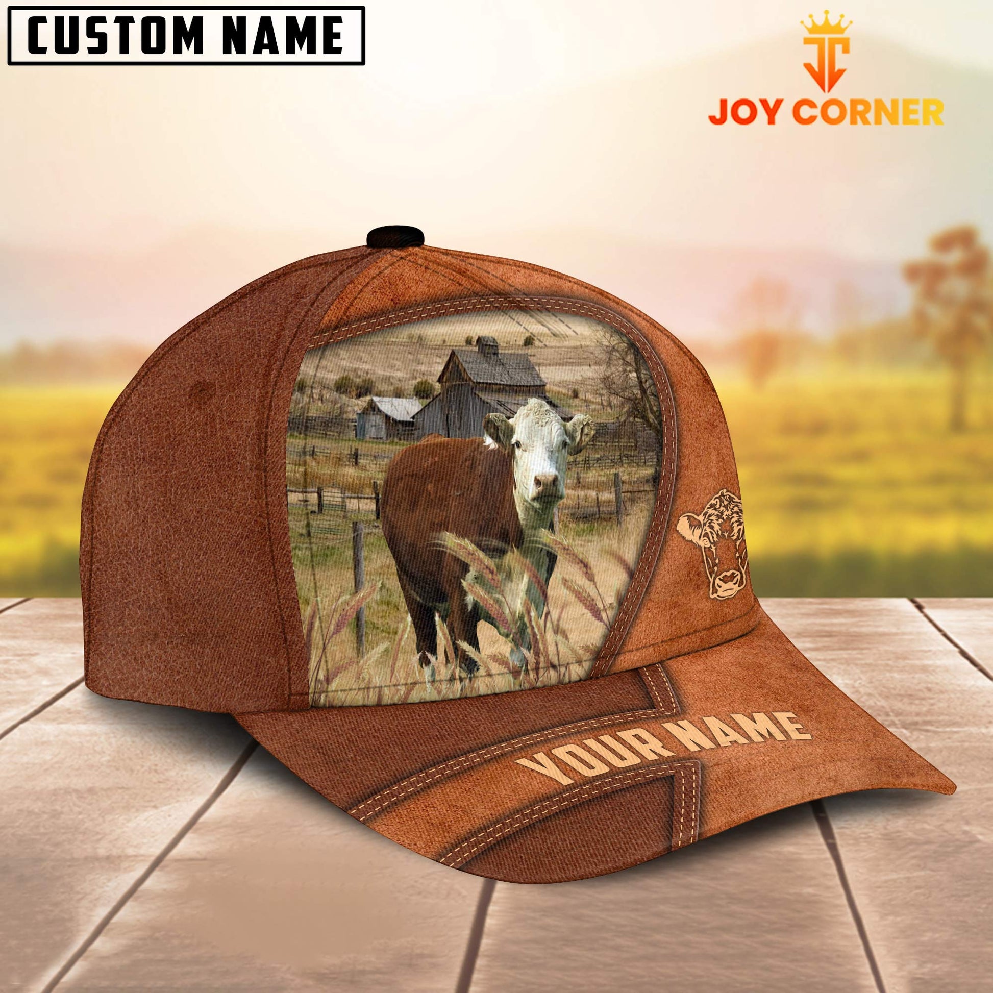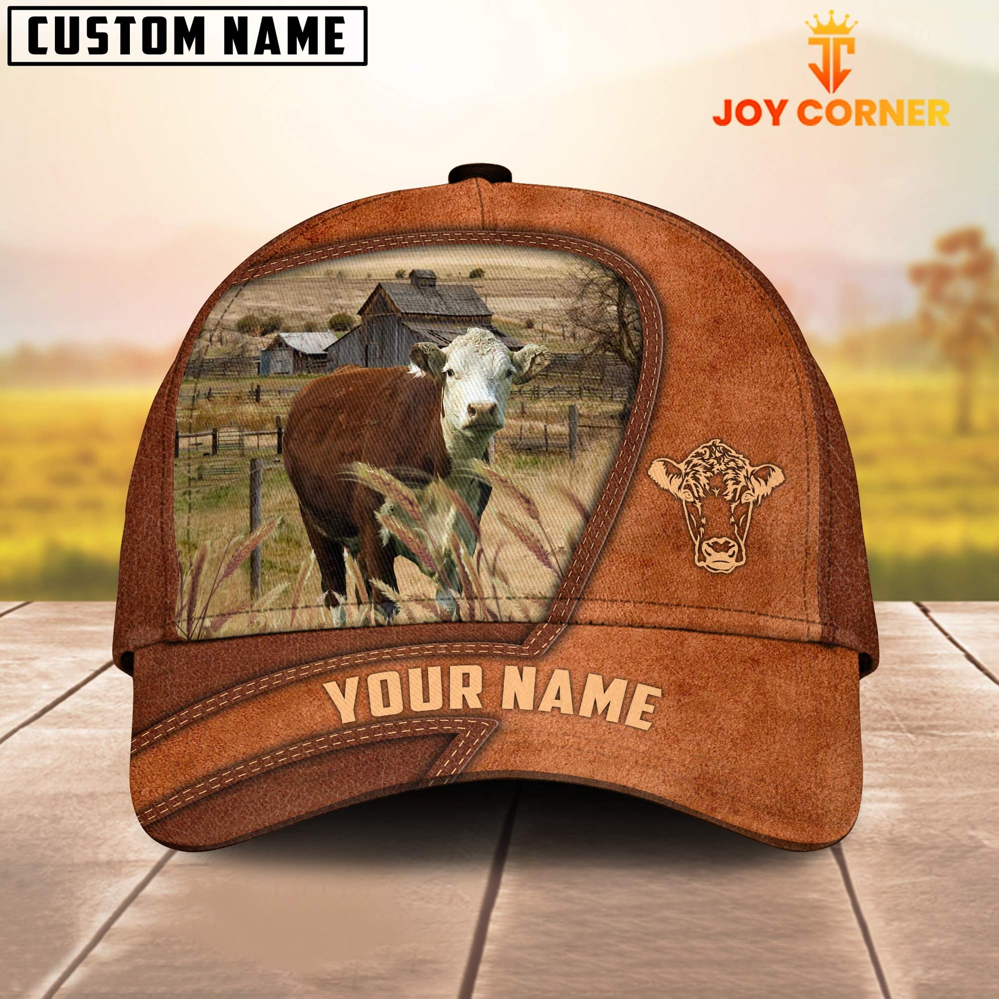 Uni Hereford Customized Name Brown Leather Pattern Cap