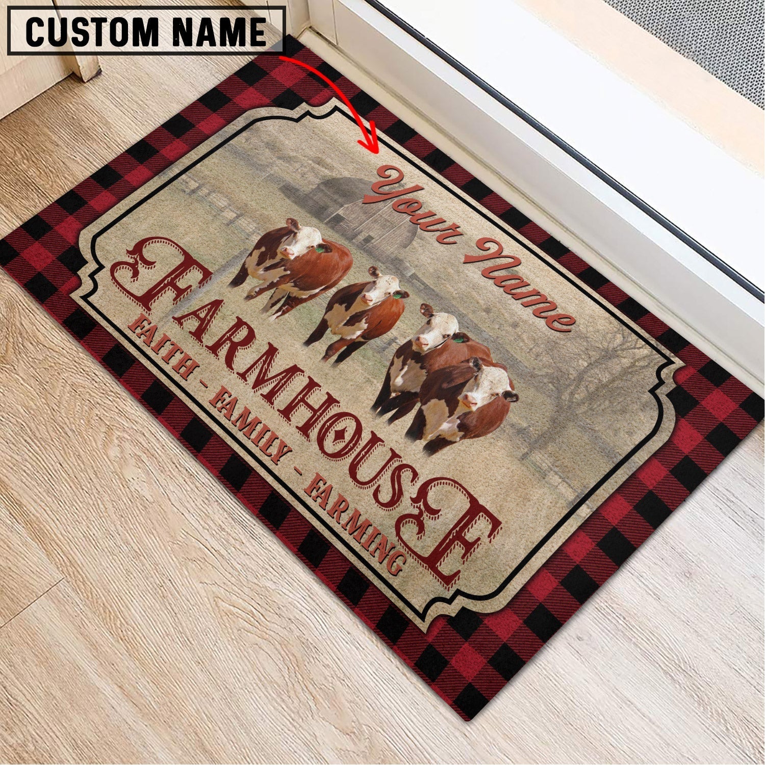 Uni Hereford Faith Family Farming Custom Name Doormat