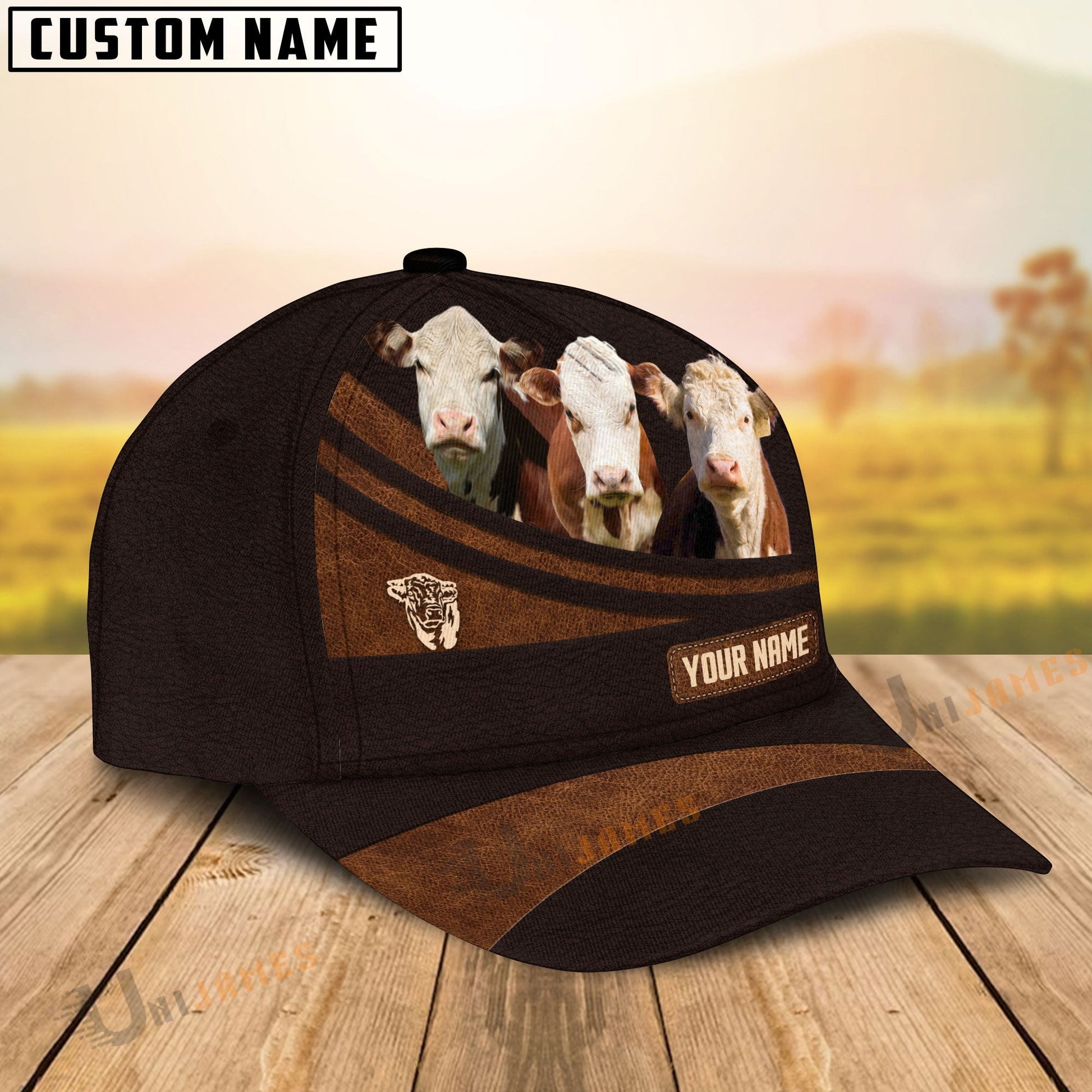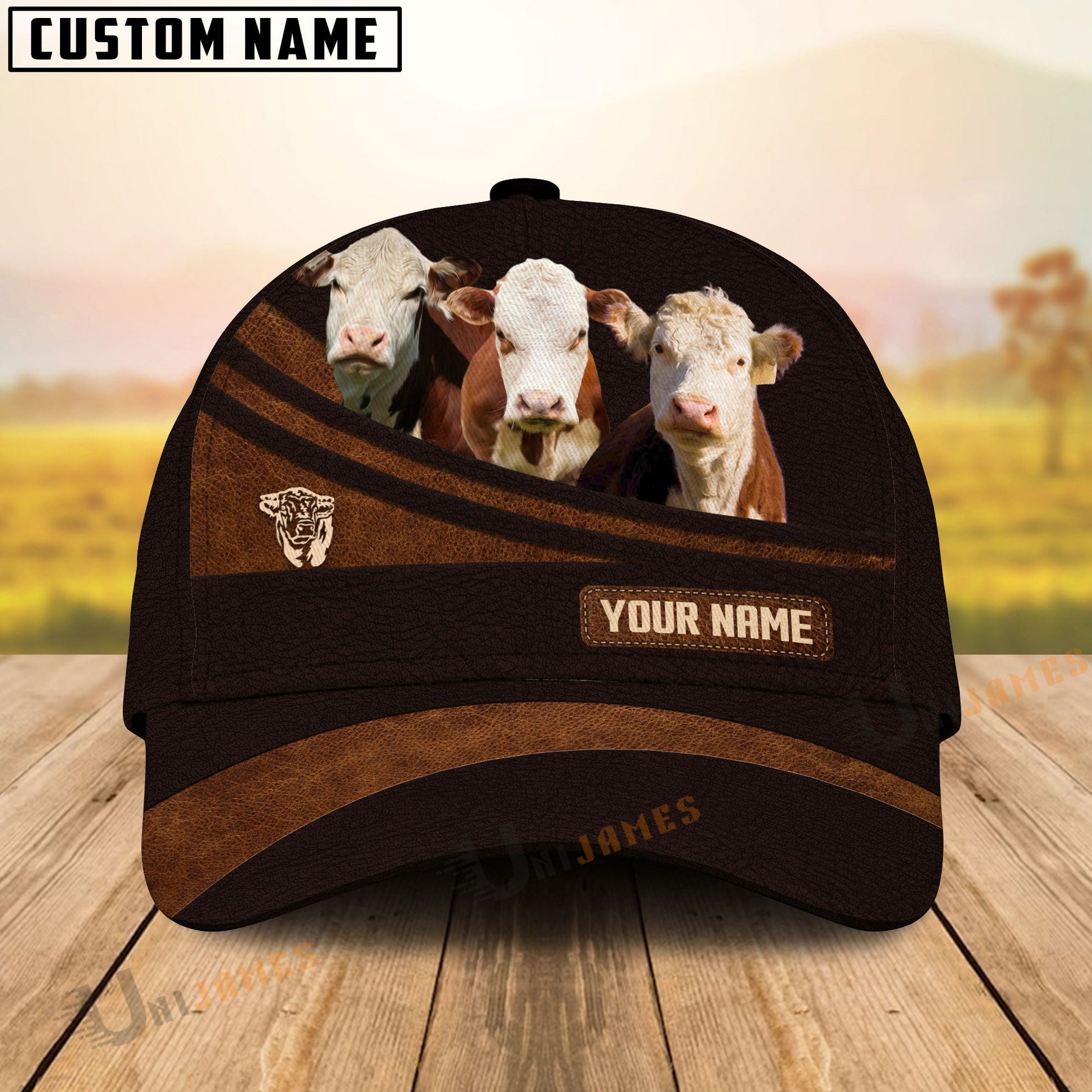 Uni Hereford Farm Leather Pattern Customized Name Cap