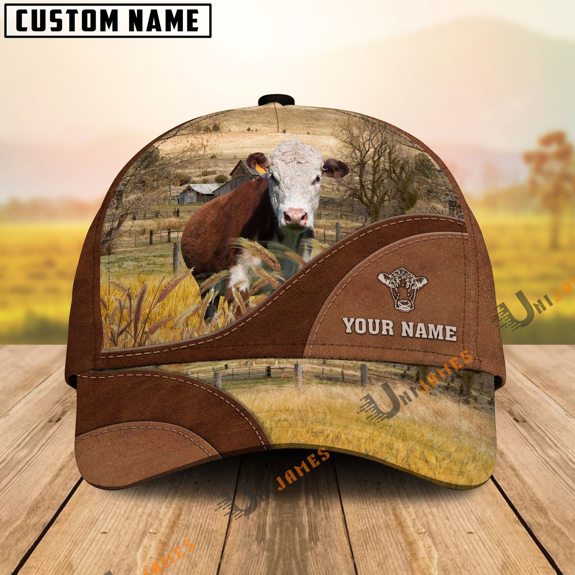 Uni Hereford Farm Living Pattern Customized Name Cap