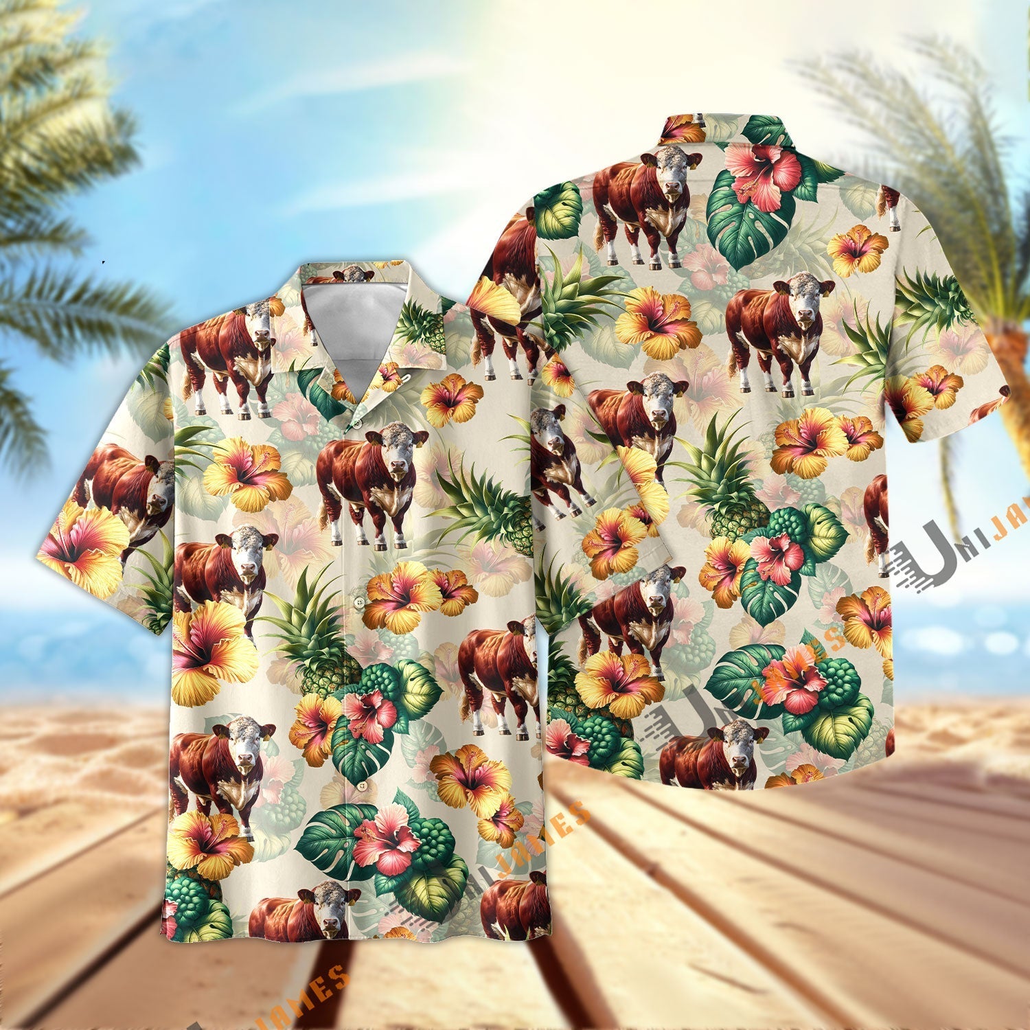 Uni Hereford Hibiscus Pineapple Hawaiian Shirt