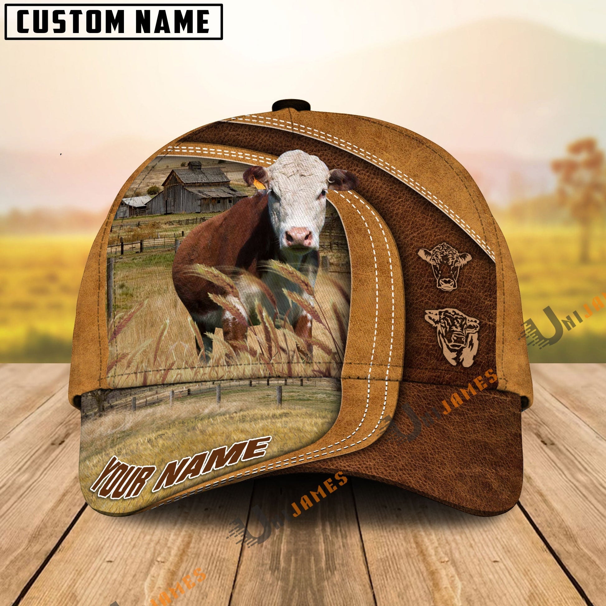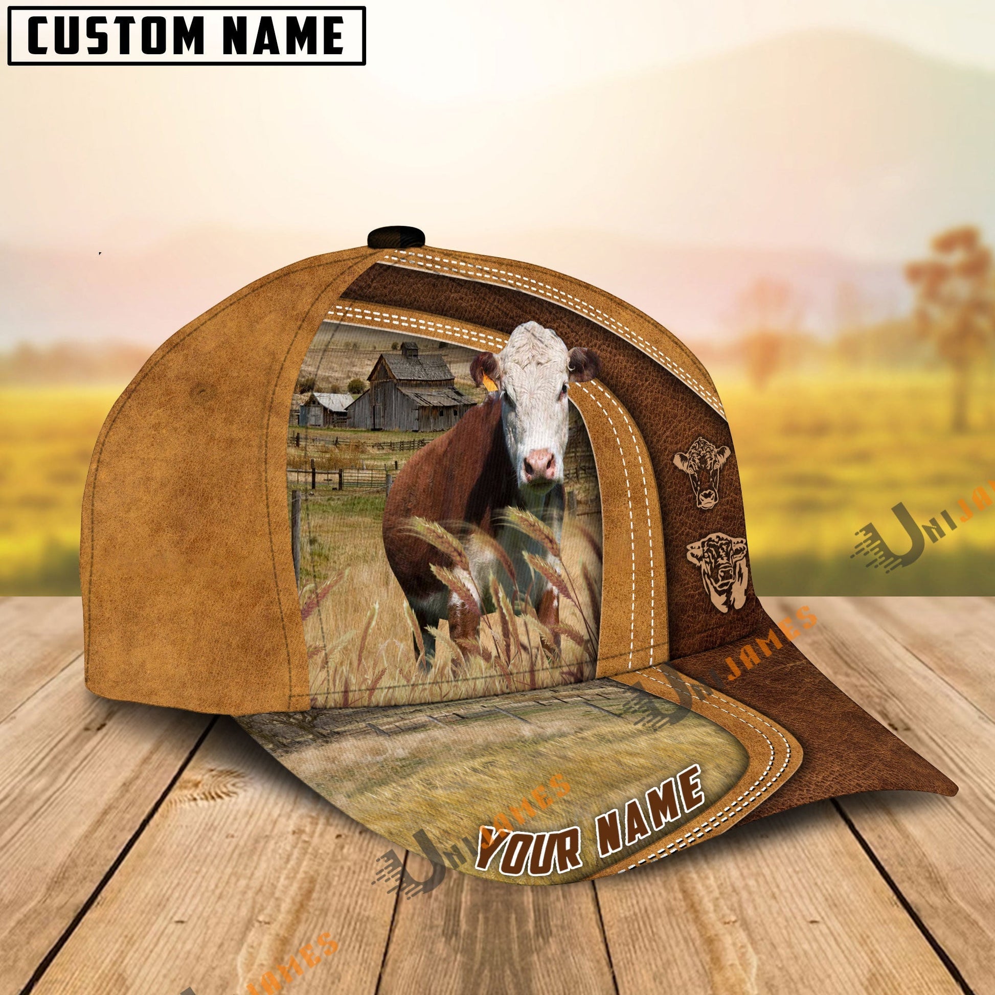 Uni Hereford Ranch Lift Leather Pattern Customized Name Cap