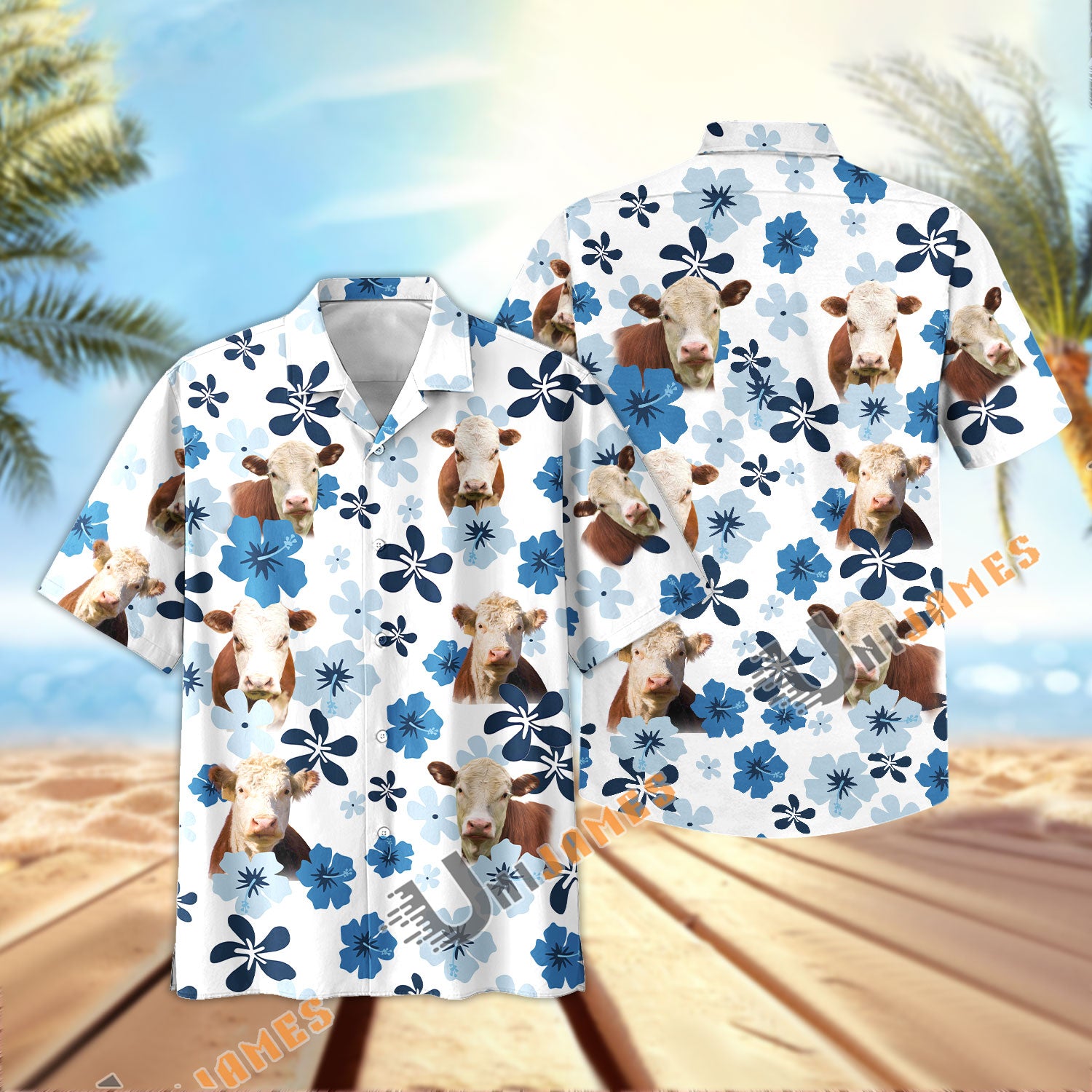 Uni Hereford Retro Blue Aloha Floral Hawaiian Shirt