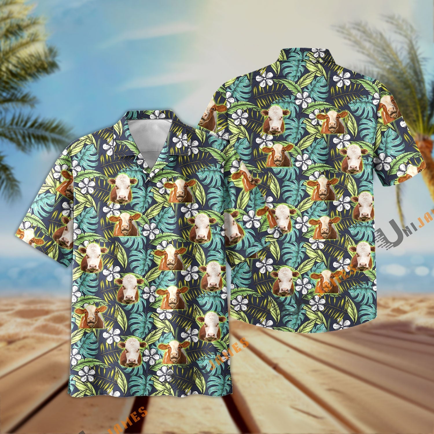 Uni Hereford Summer Blue Flowers 3D Hawaiian Shirt