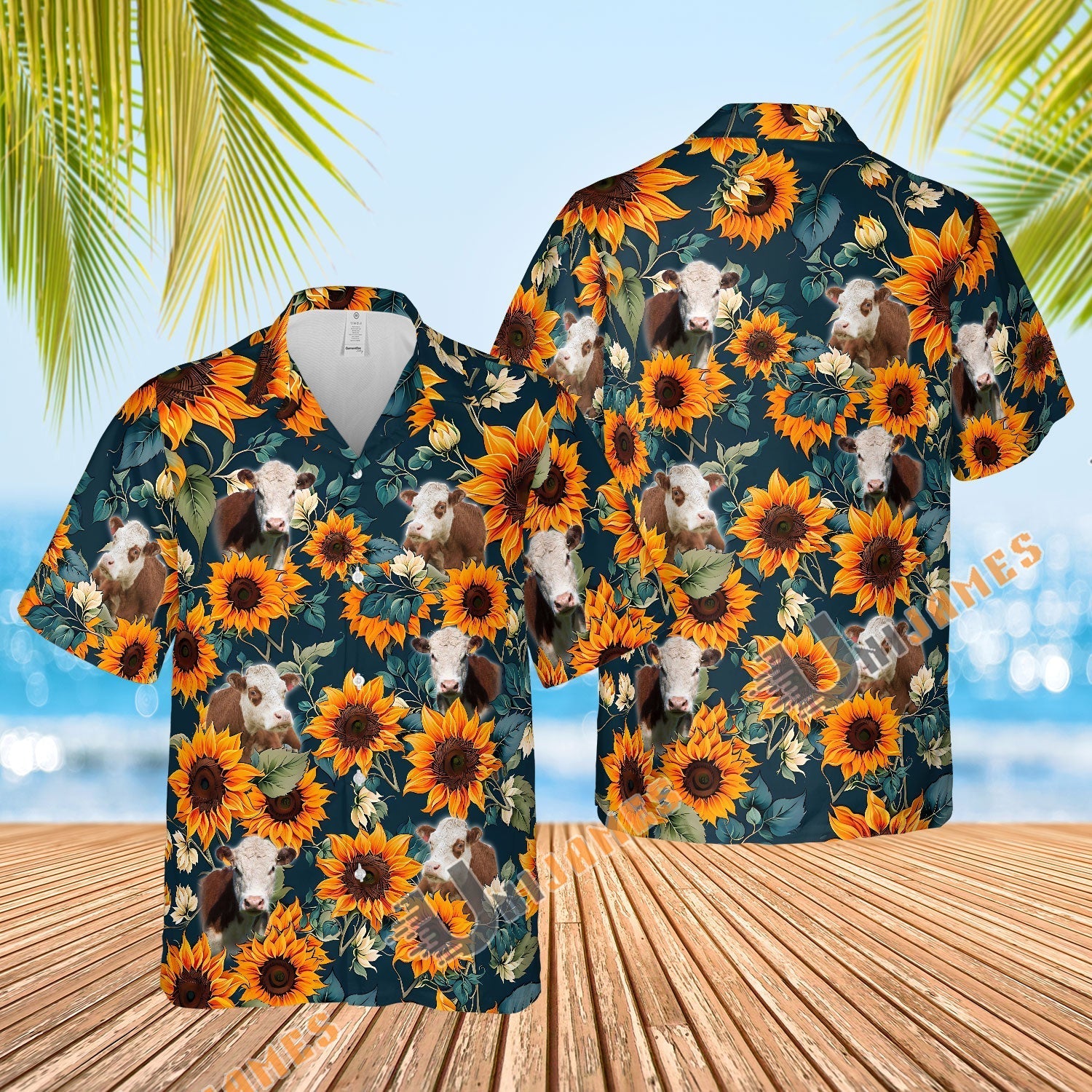 Uni Hereford Sunflowers Blue 3D Hawaiian Shirt