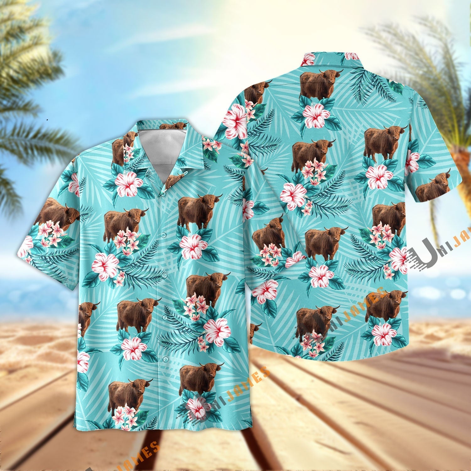 Uni Highland Aloha Cyan Color Hawaiian Shirt