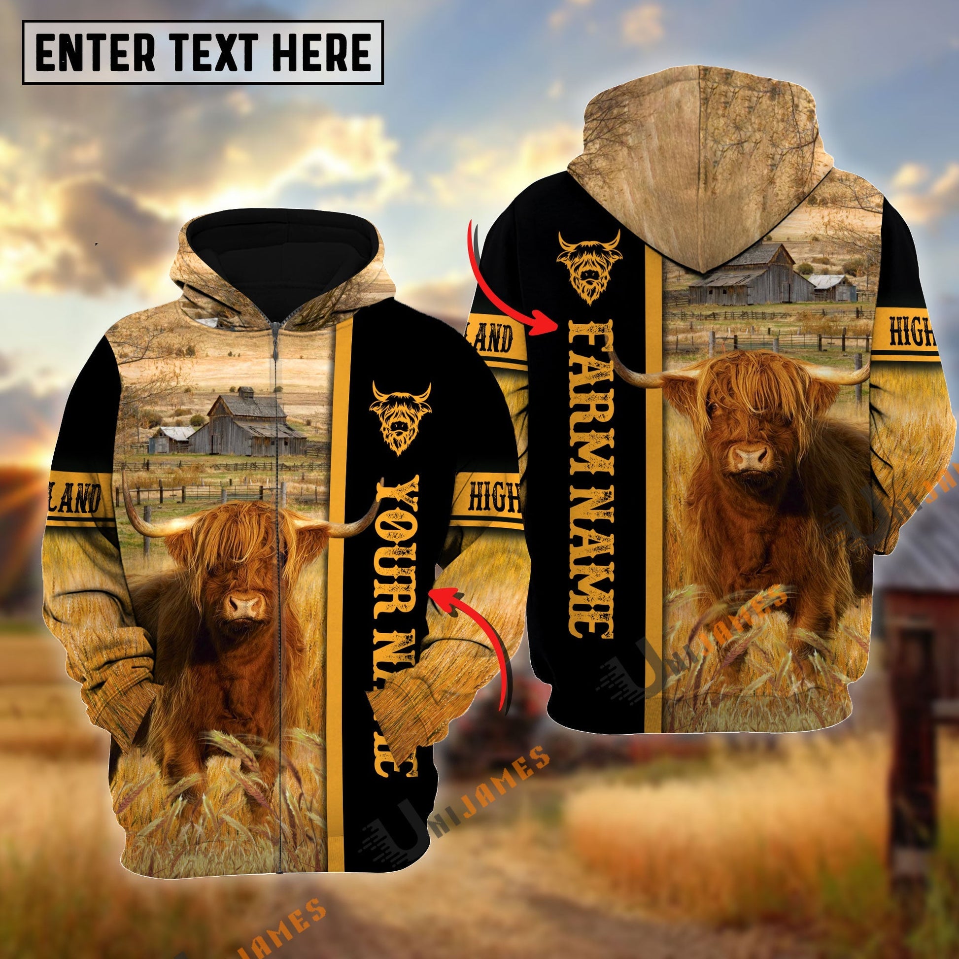 Uni Highland Autumn Farming Personalized Name, Farm Name 3D Hoodie