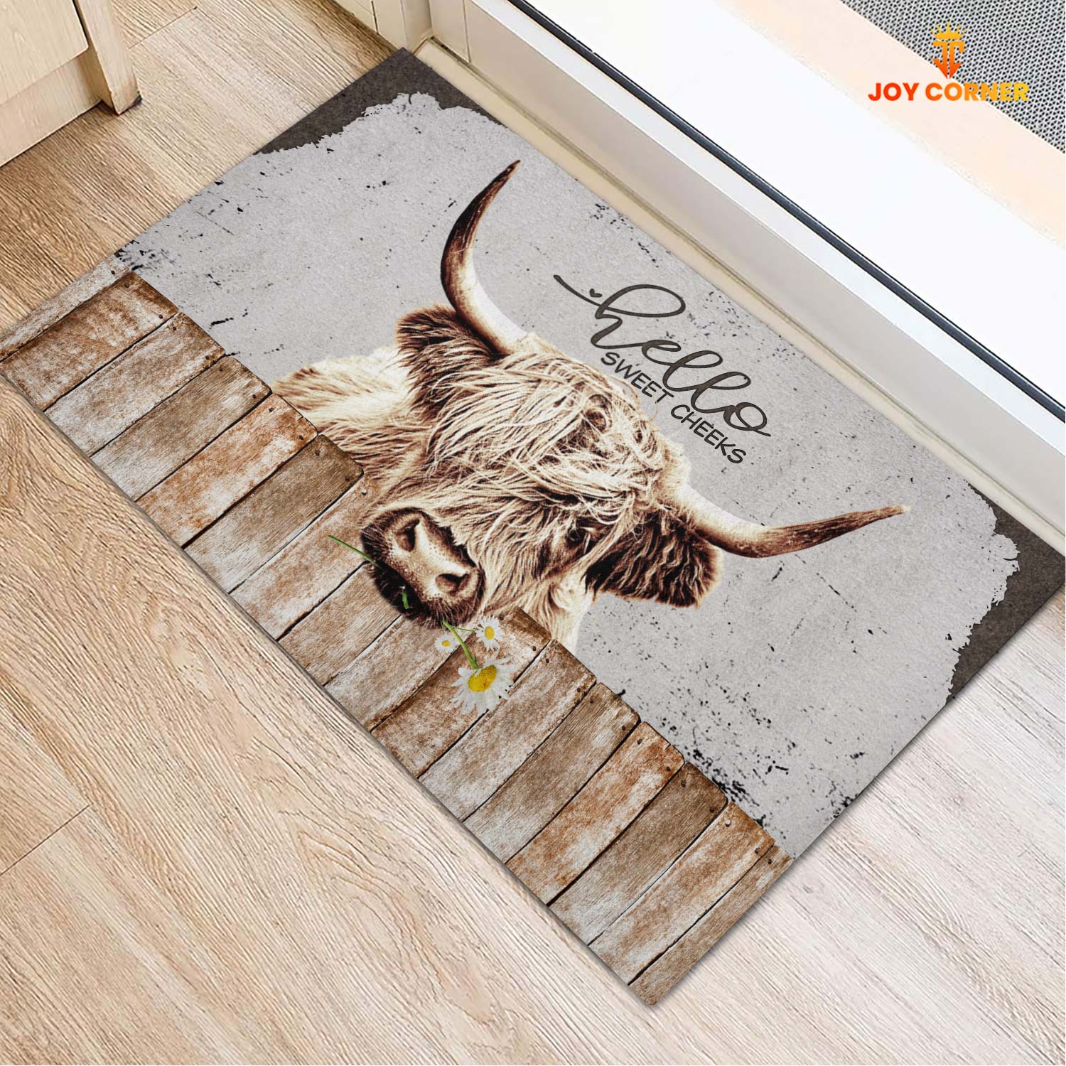 Uni Highland Cattle Hello Sweet Checks Doormat