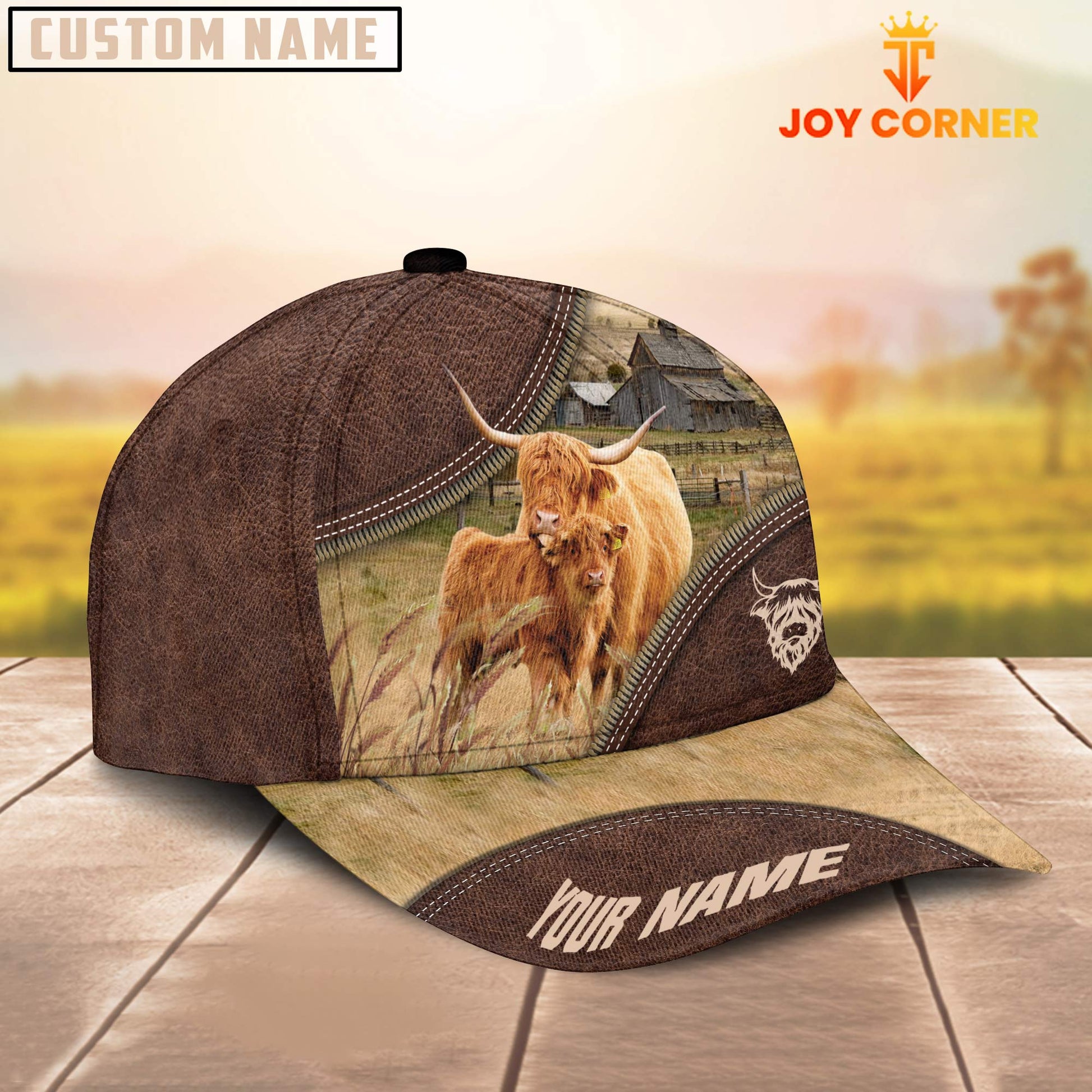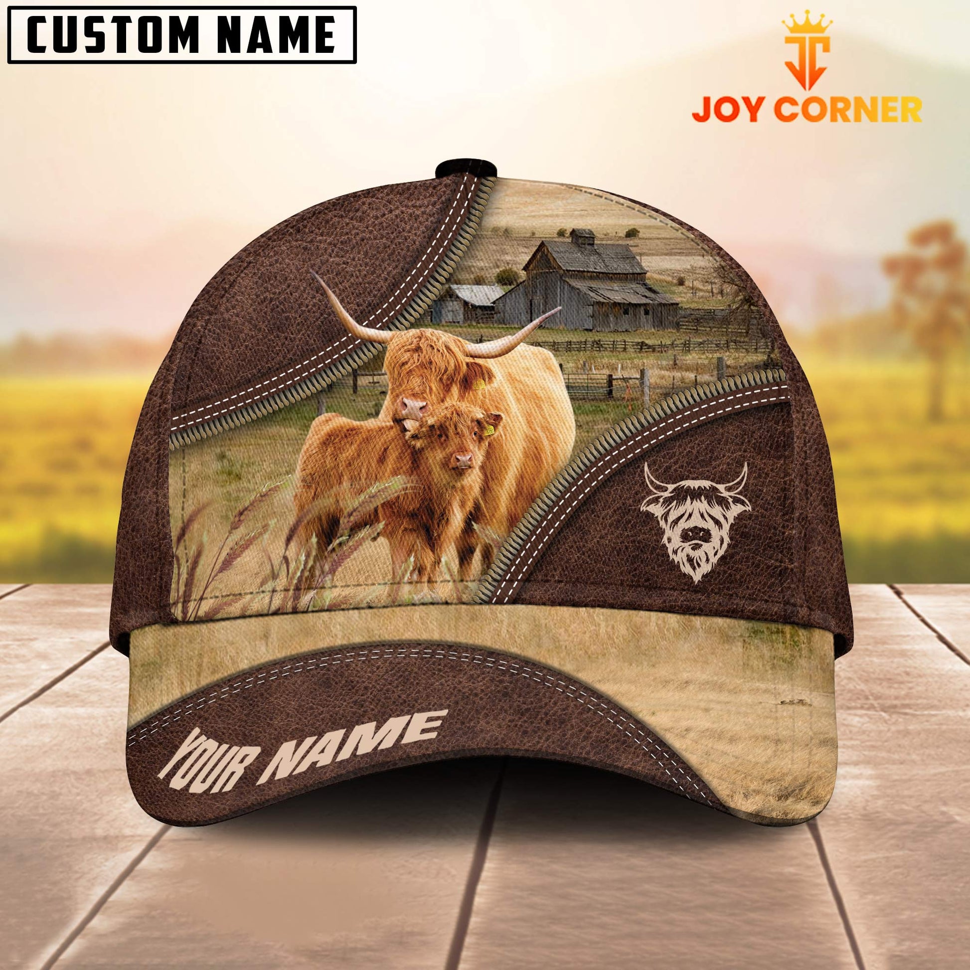 Uni Highland Cattle On The Farm Customized Name 3D Brown Cap