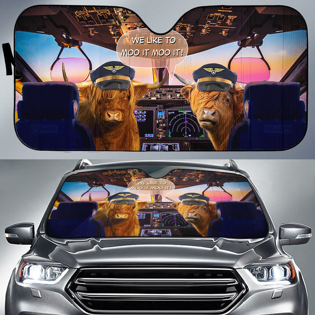 Uni Highland Cattle Pilot I Like To Moo It Moo It All Over Printed 3D Sun Shade