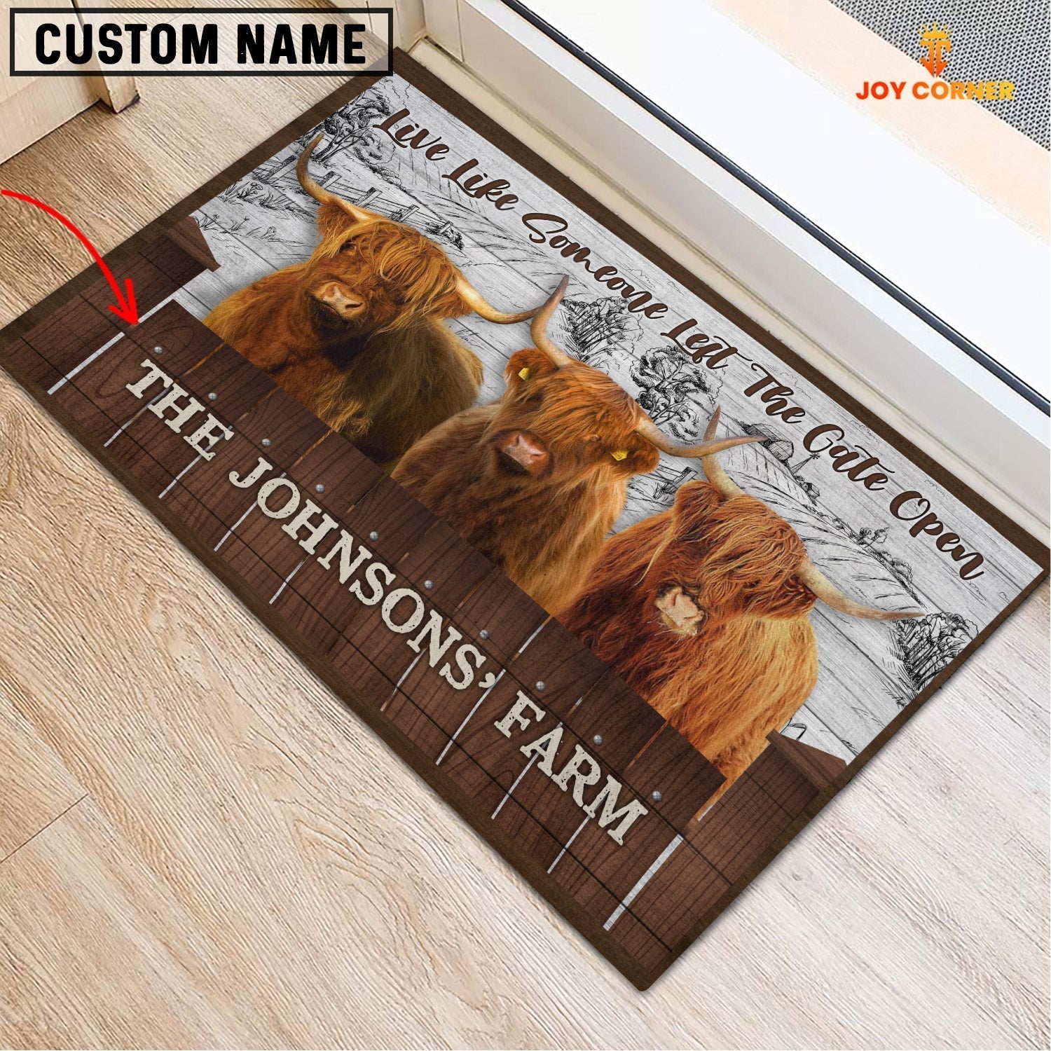 Uni Highland Custom Name - Live Like Someone Left The Gate Open Doormat