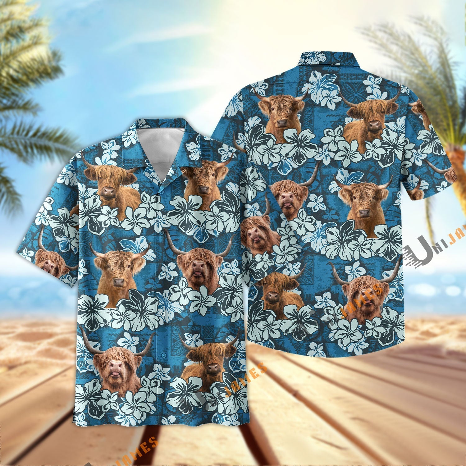 Uni Highland Dark Blue Flower Hawaiian Shirt