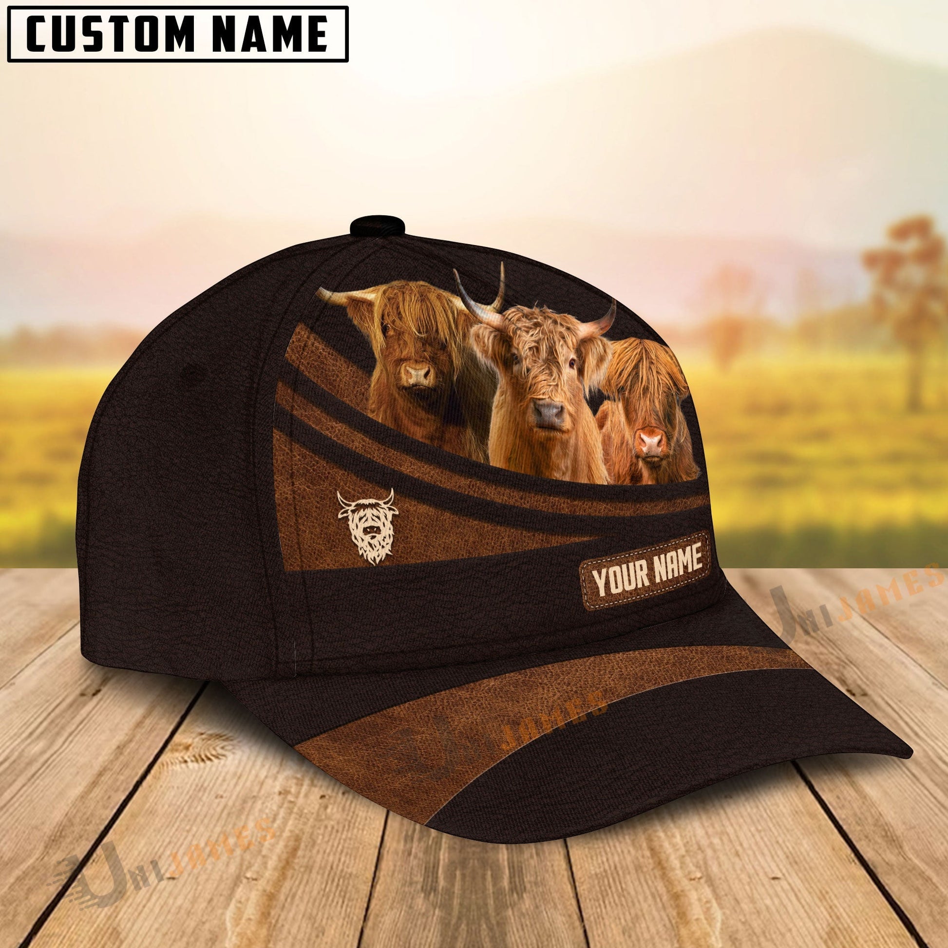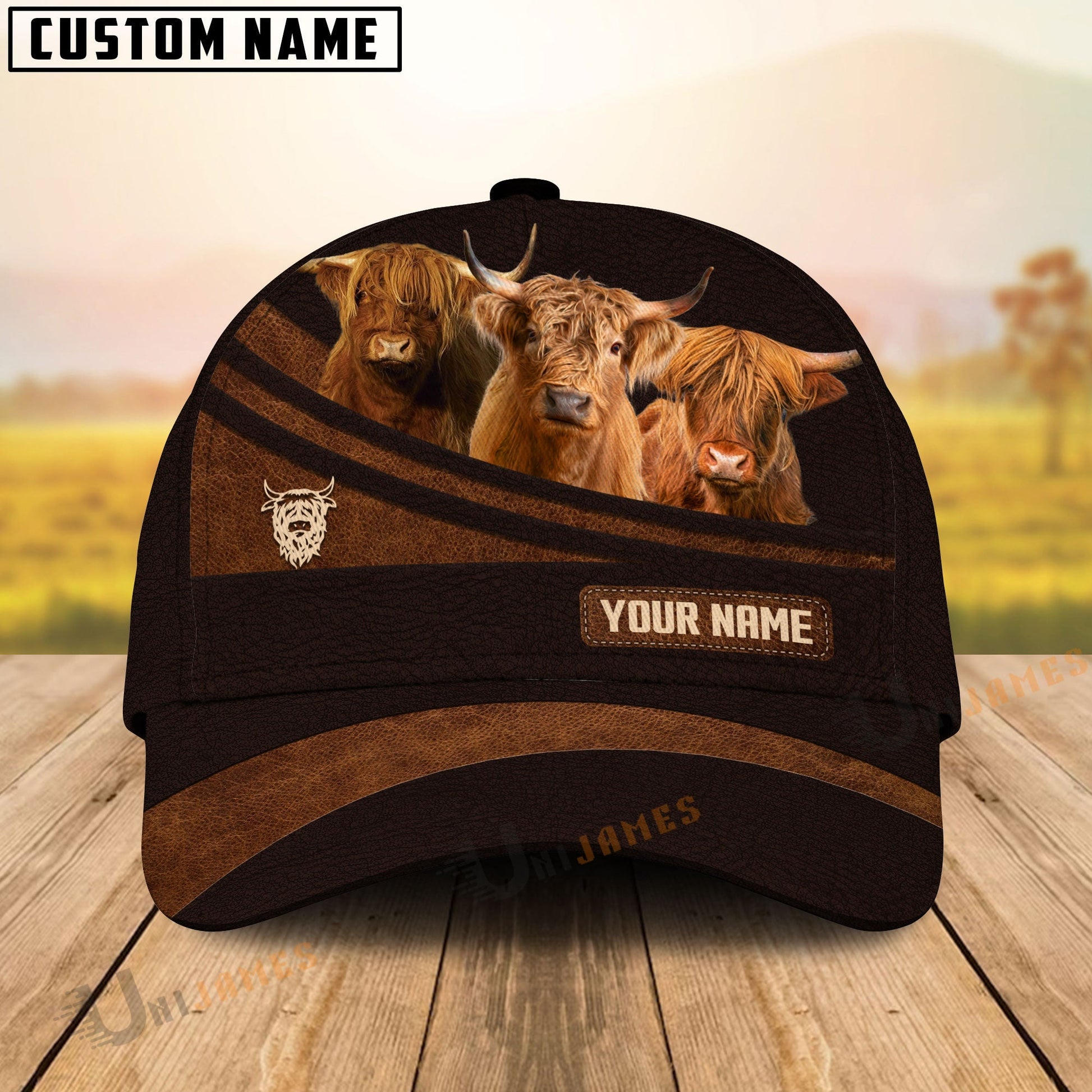Uni Highland Farm Leather Pattern Customized Name Cap