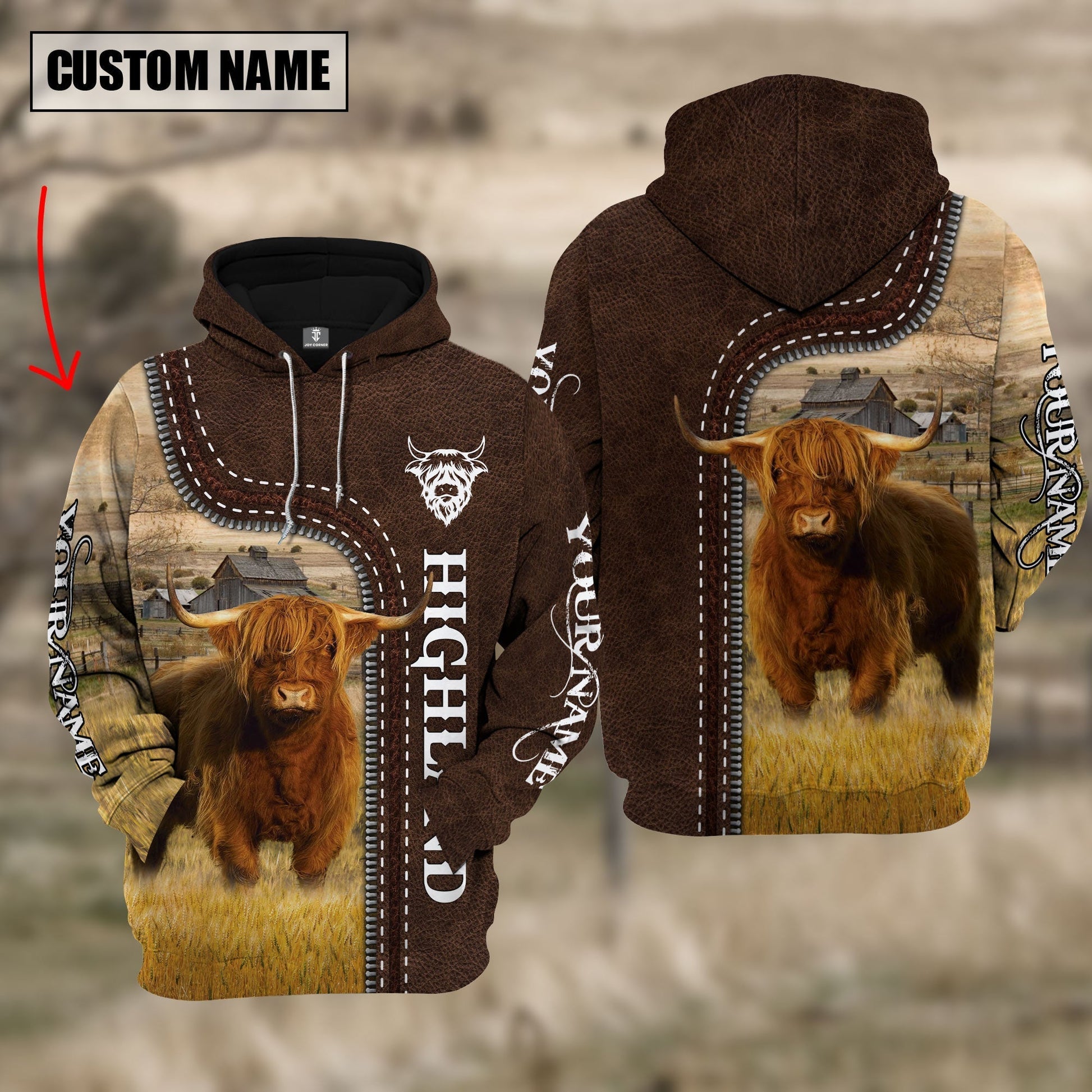 Uni Highland Farming Leather Pattern Personalized 3D Hoodie