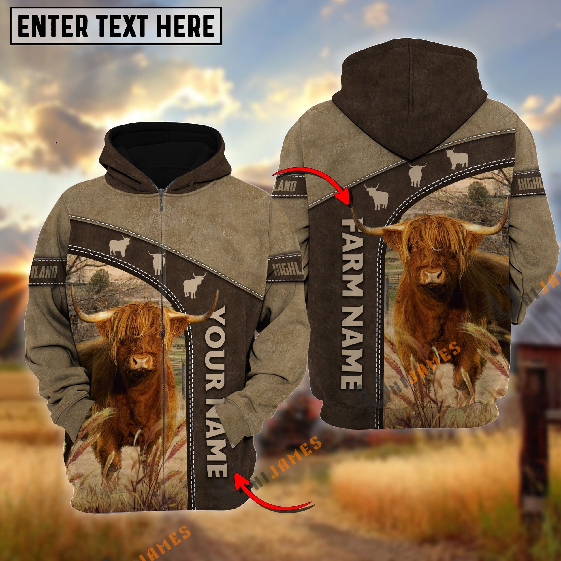 Uni Highland Happiness Farming Personalized Name, Farm Name 3D Hoodie