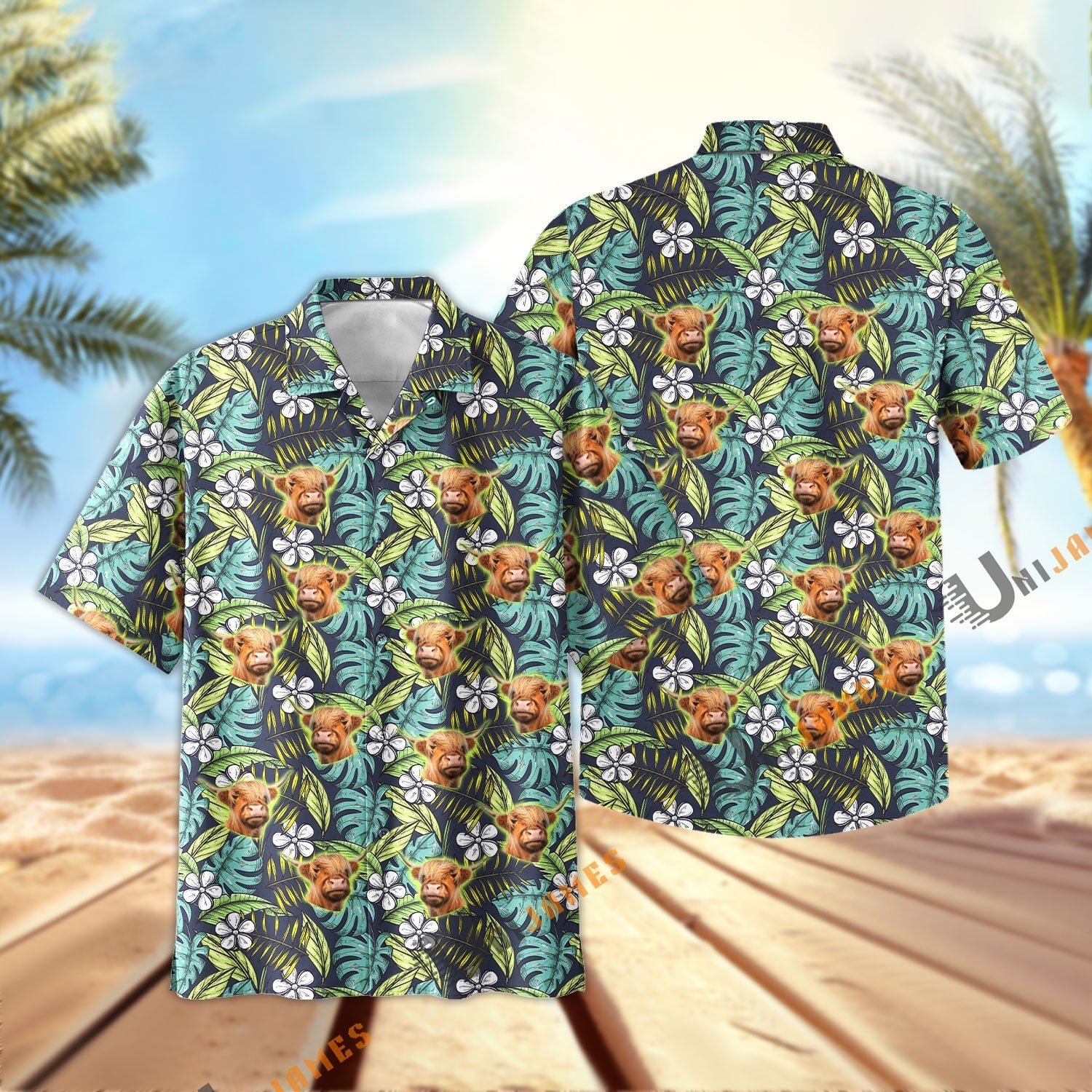 Uni Highland Summer Blue Flowers 3D Hawaiian Shirt