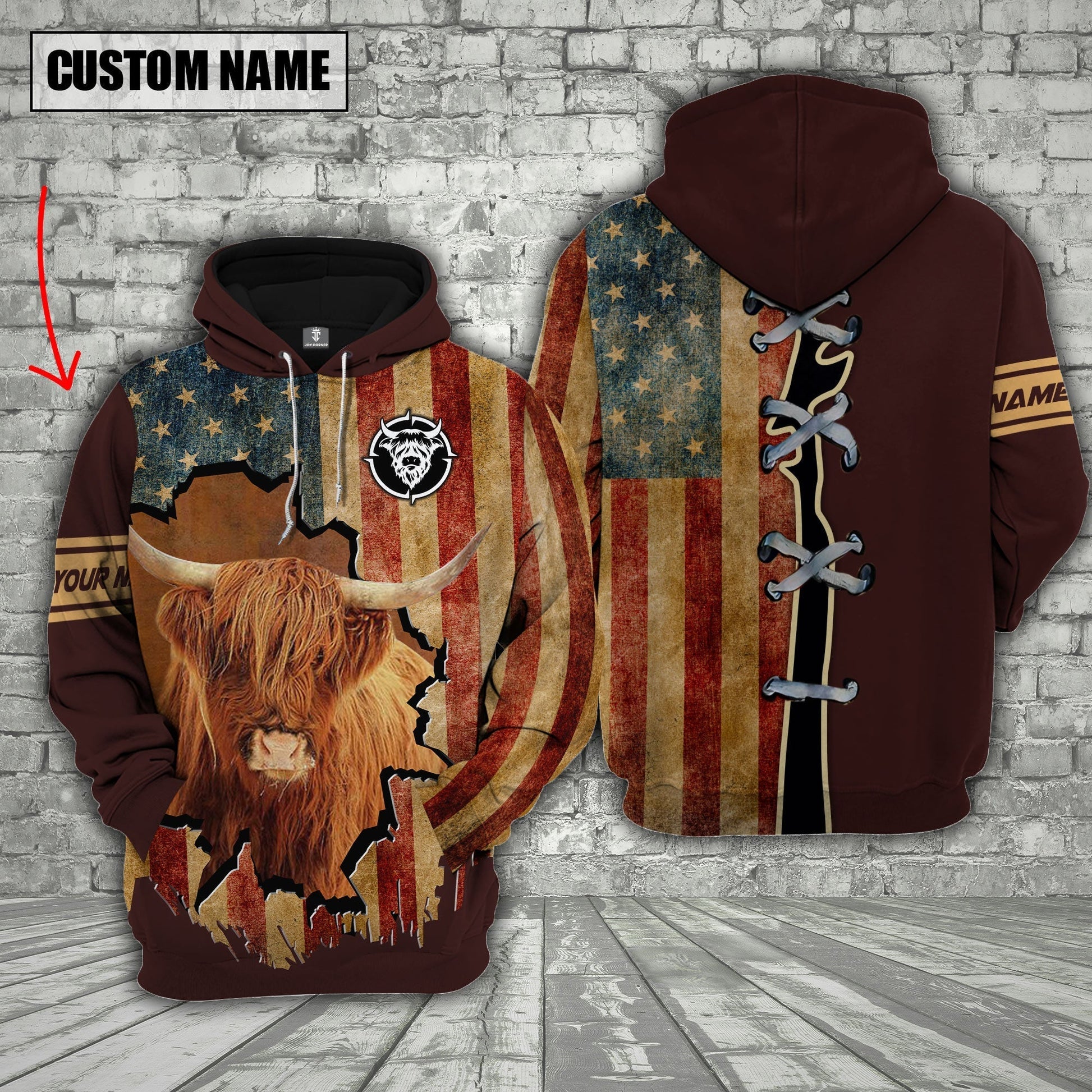 Uni Highland US Flag Retro Personalized 3D Hoodie