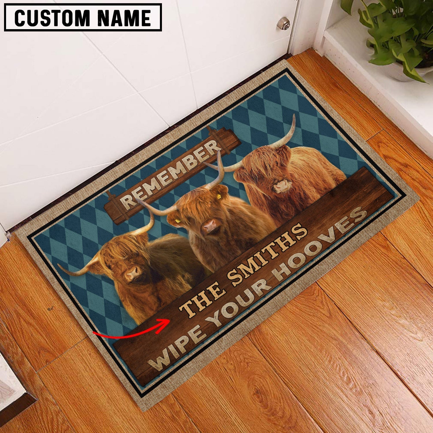 Uni Highland Wipe Your Hooves Custom Name Doormat