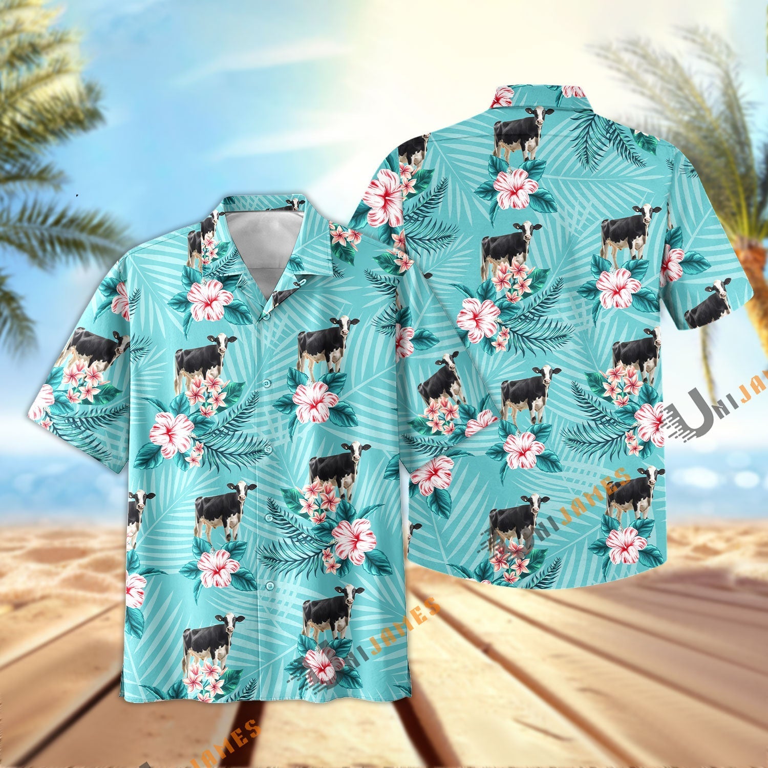 Uni Holstein Aloha Cyan Color Hawaiian Shirt