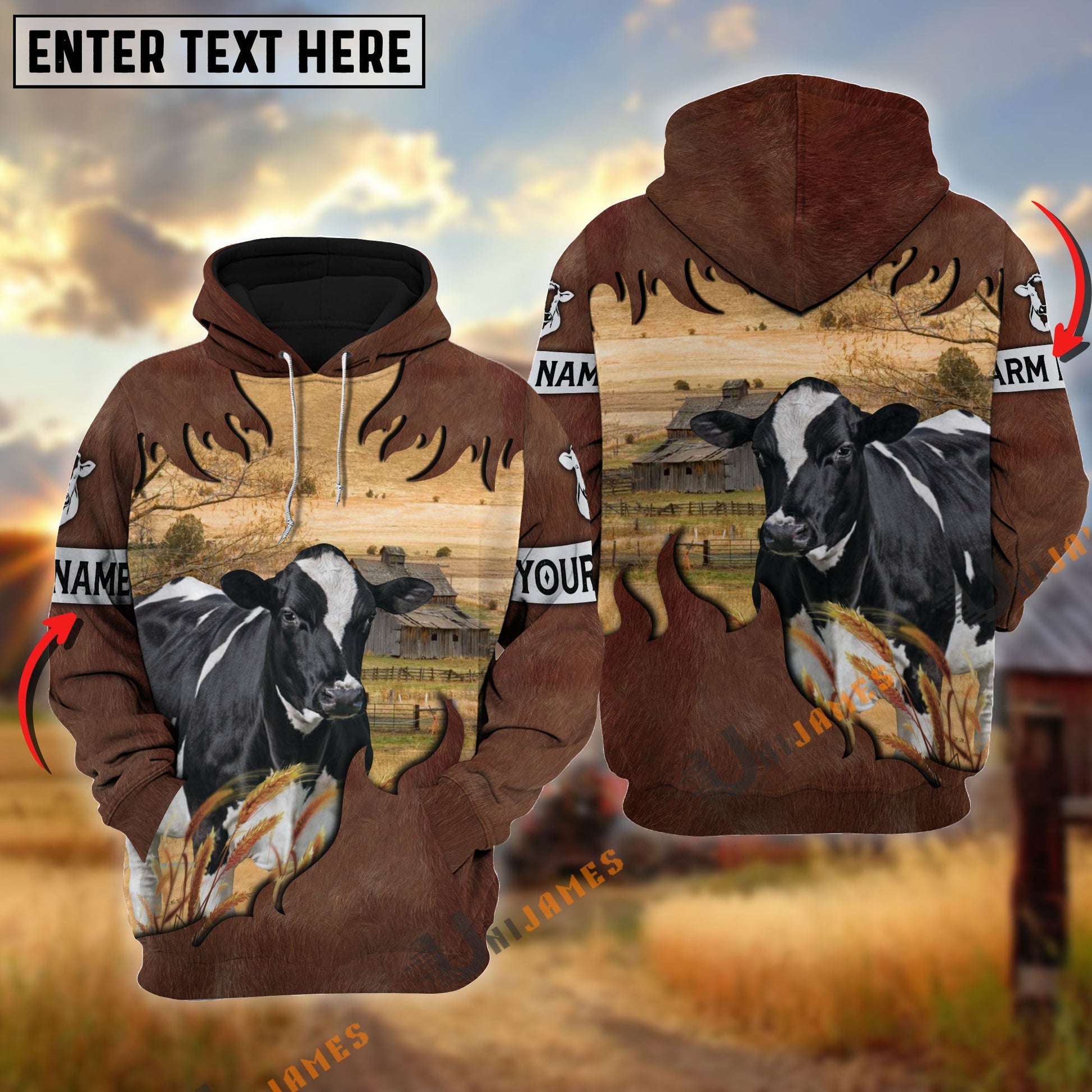 Uni Holstein Brown Hair Pattern Personalized Name 3D Hoodie