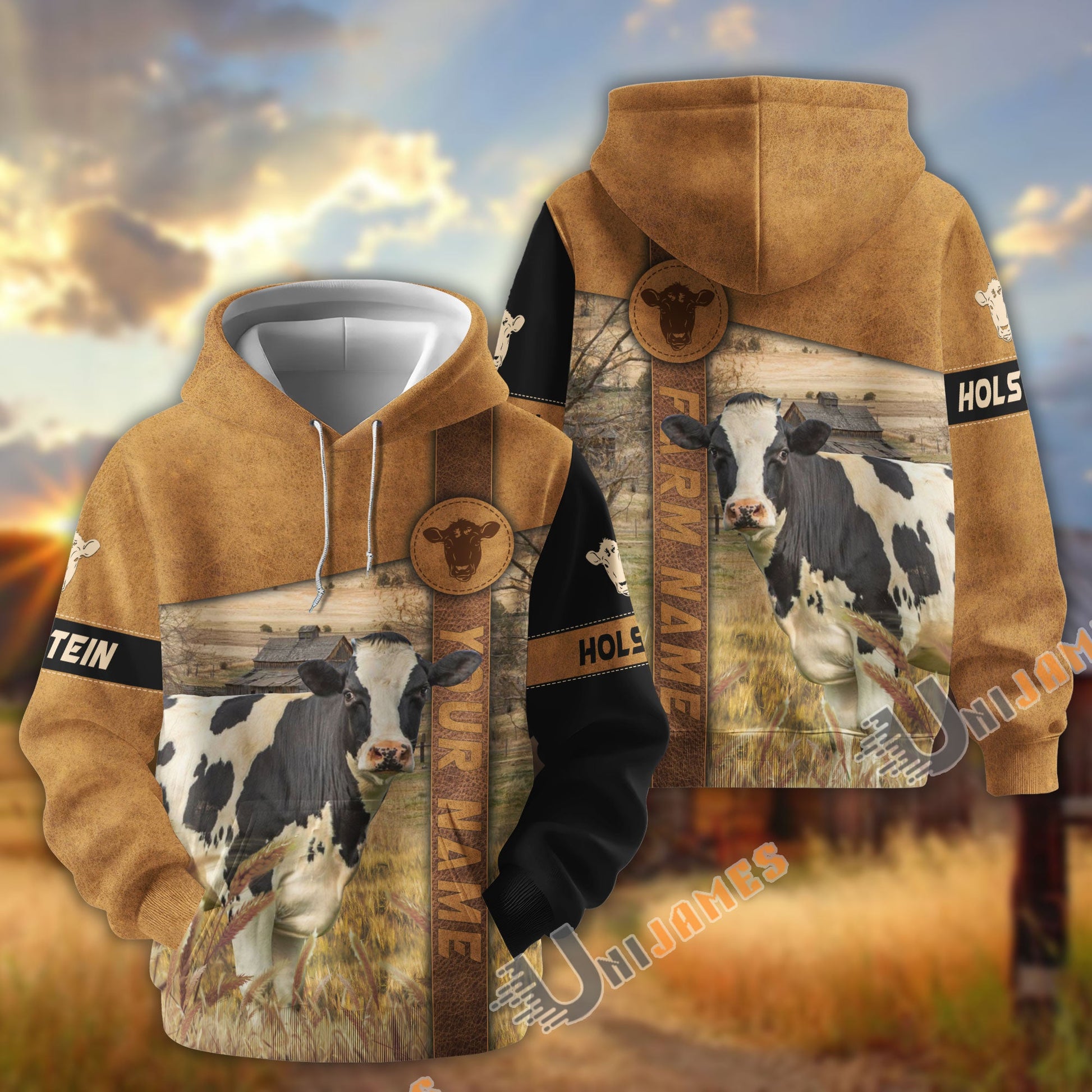 Uni Holstein Customize Name, Farm Name Brown Pattern Hoodie