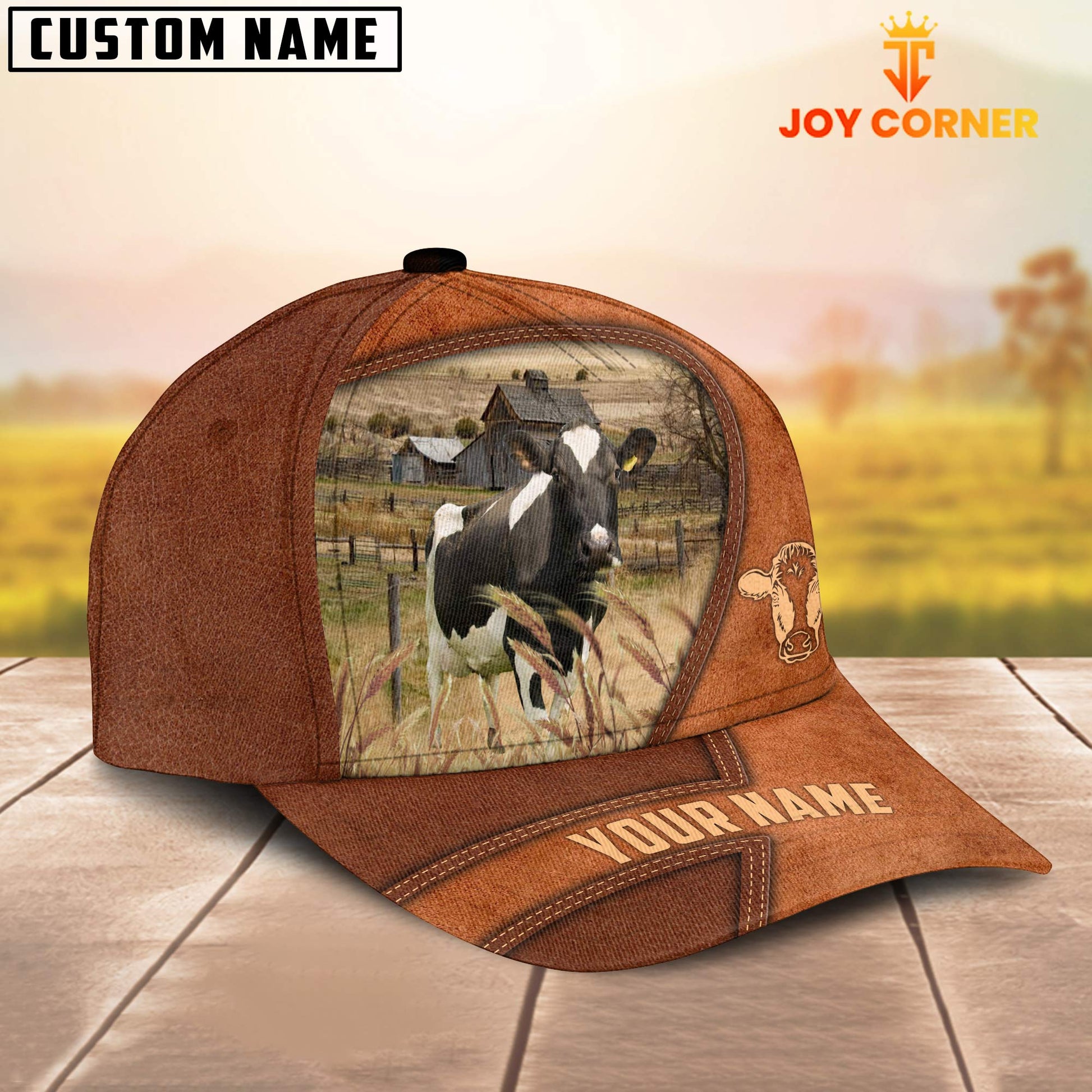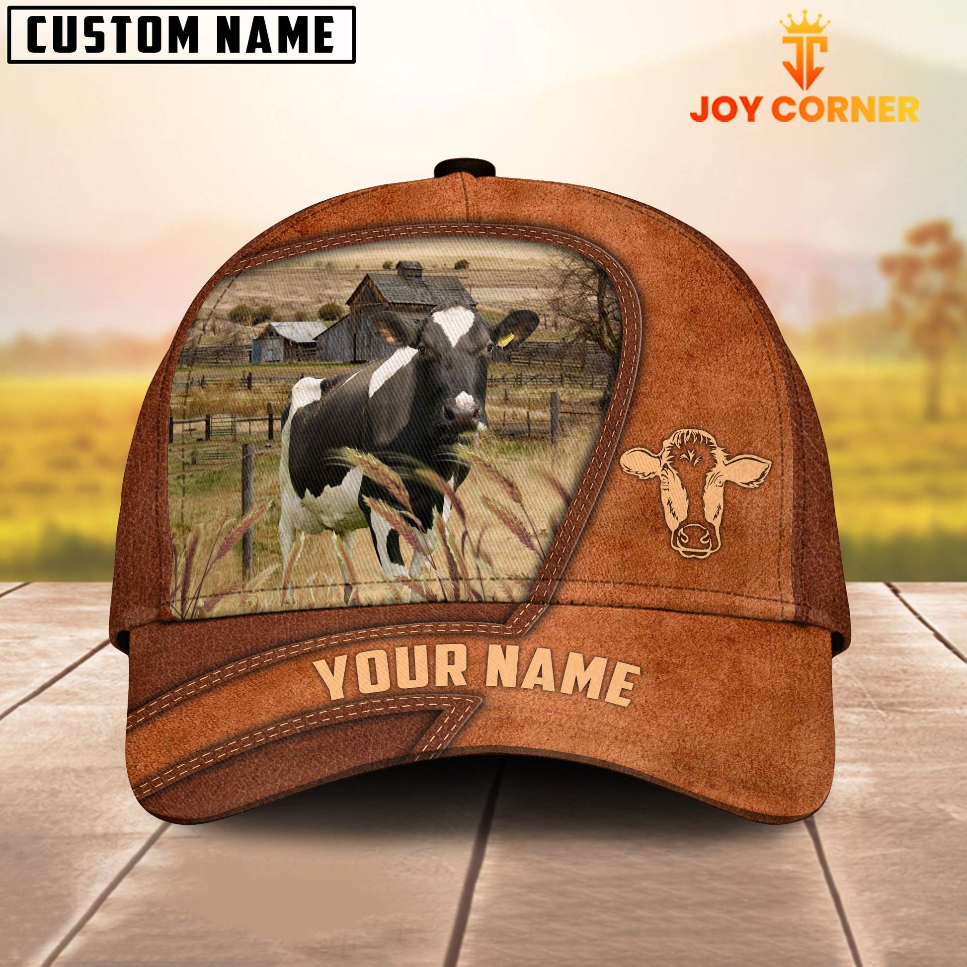 Uni Holstein Customized Name Brown Leather Pattern Cap