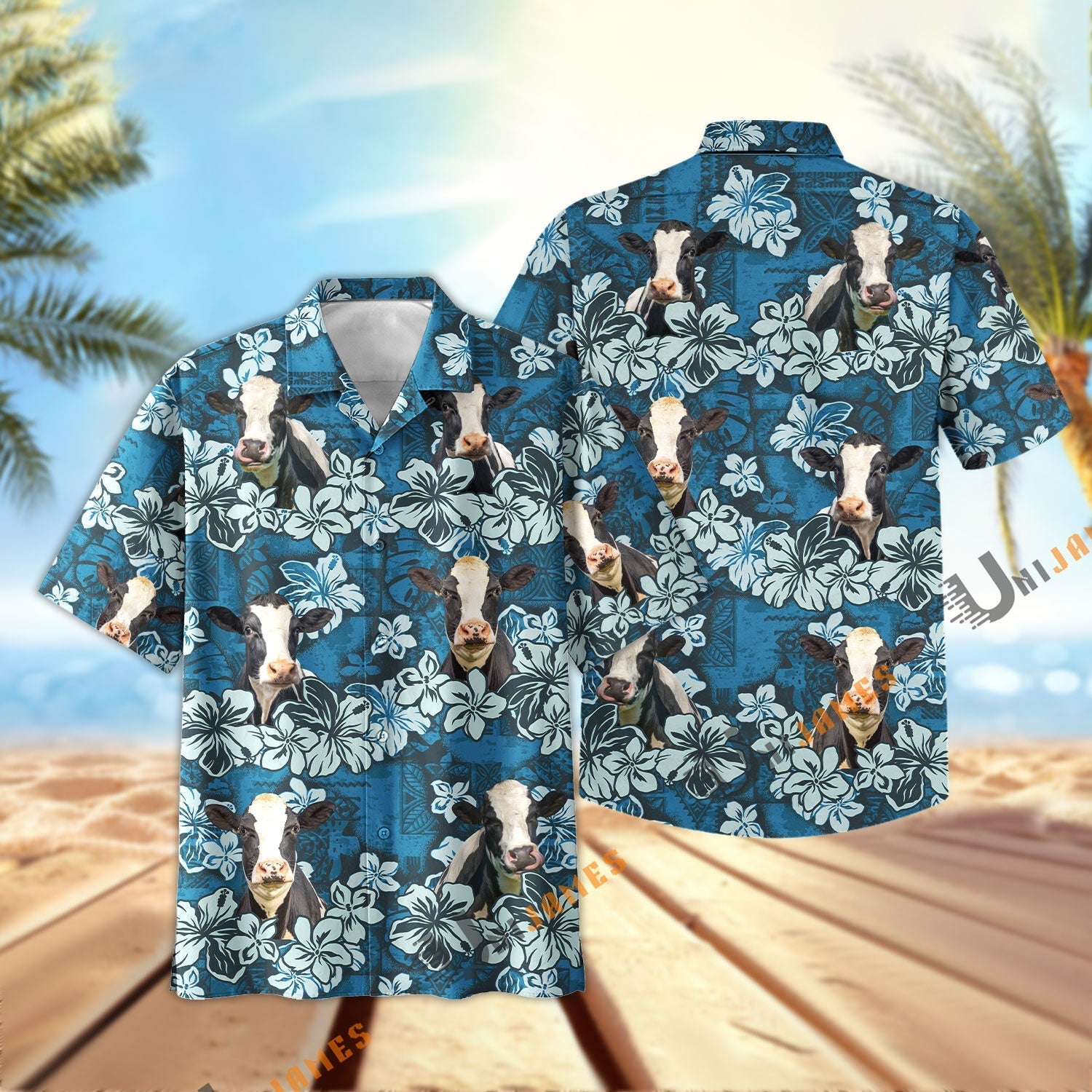 Uni Holstein Dark Blue Flower Hawaiian Shirt