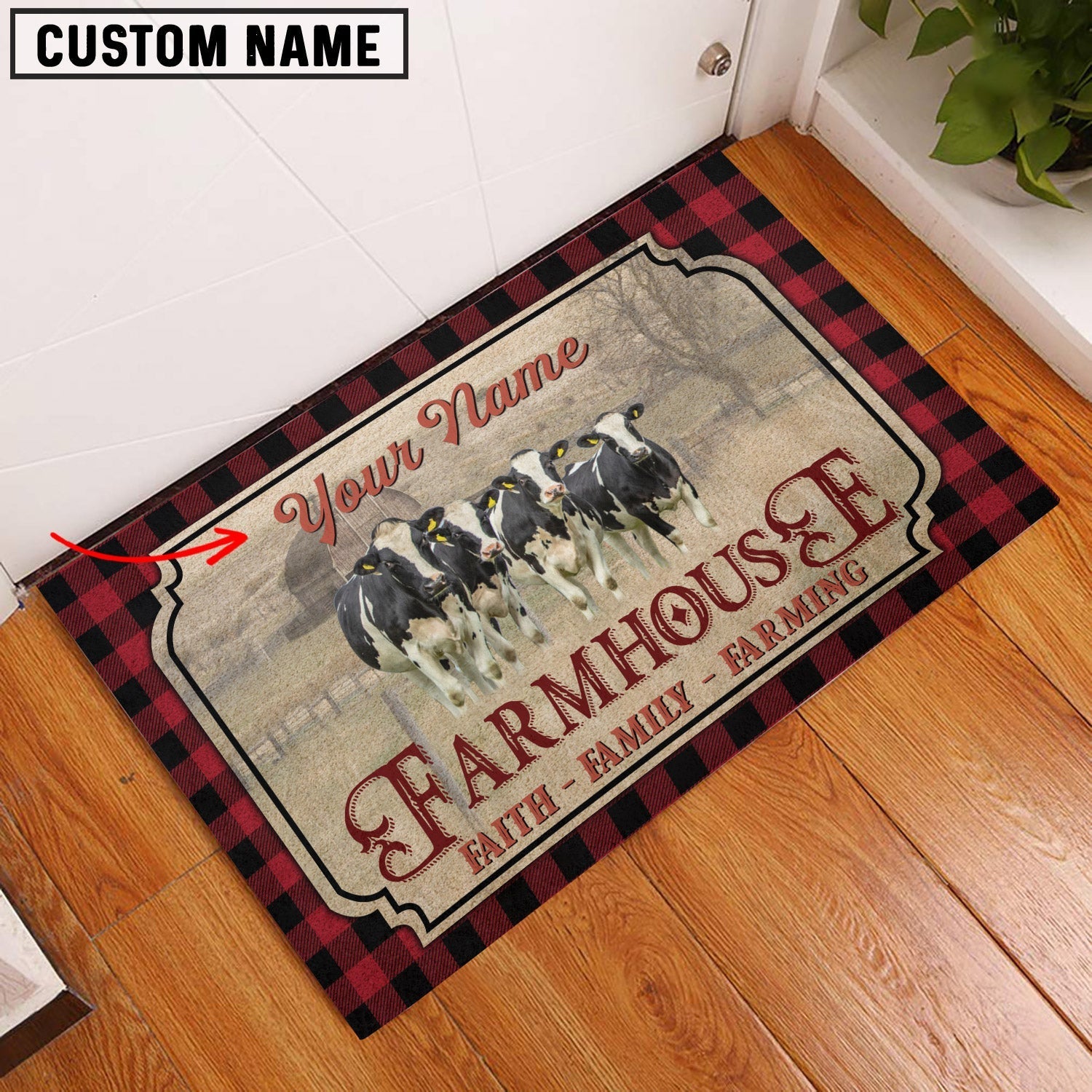 Uni Holstein Faith Family Farming Custom Name Doormat