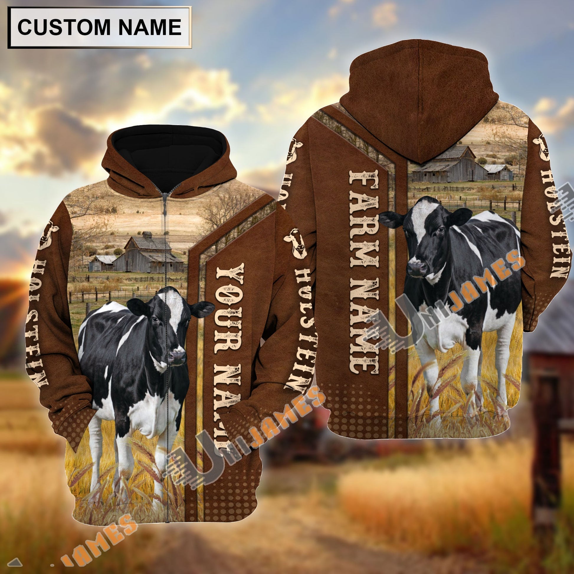Uni Holstein Personalized Name, Farm Name 3D Hoodie