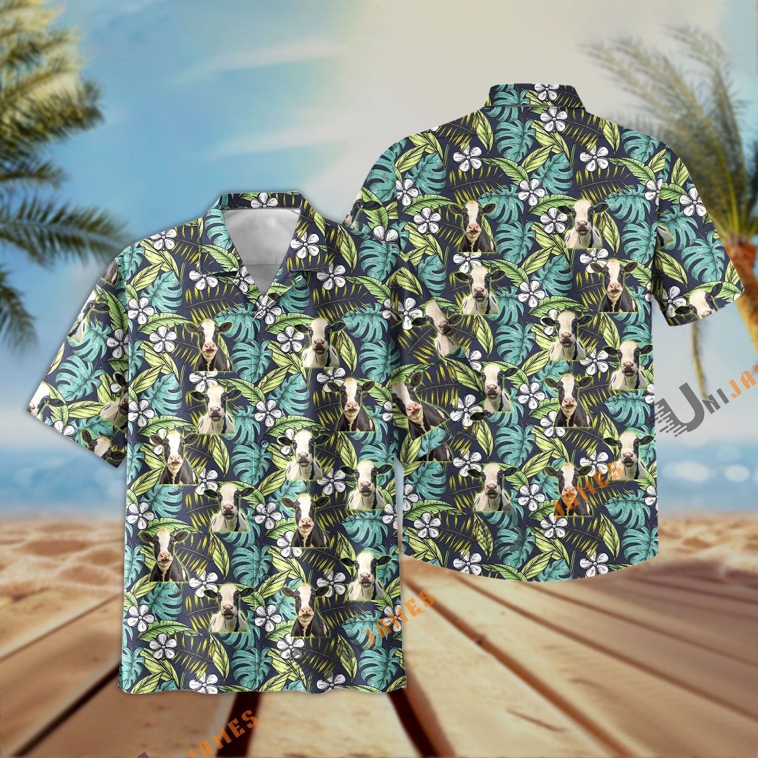 Uni Holstein Summer Blue Flowers 3D Hawaiian Shirt