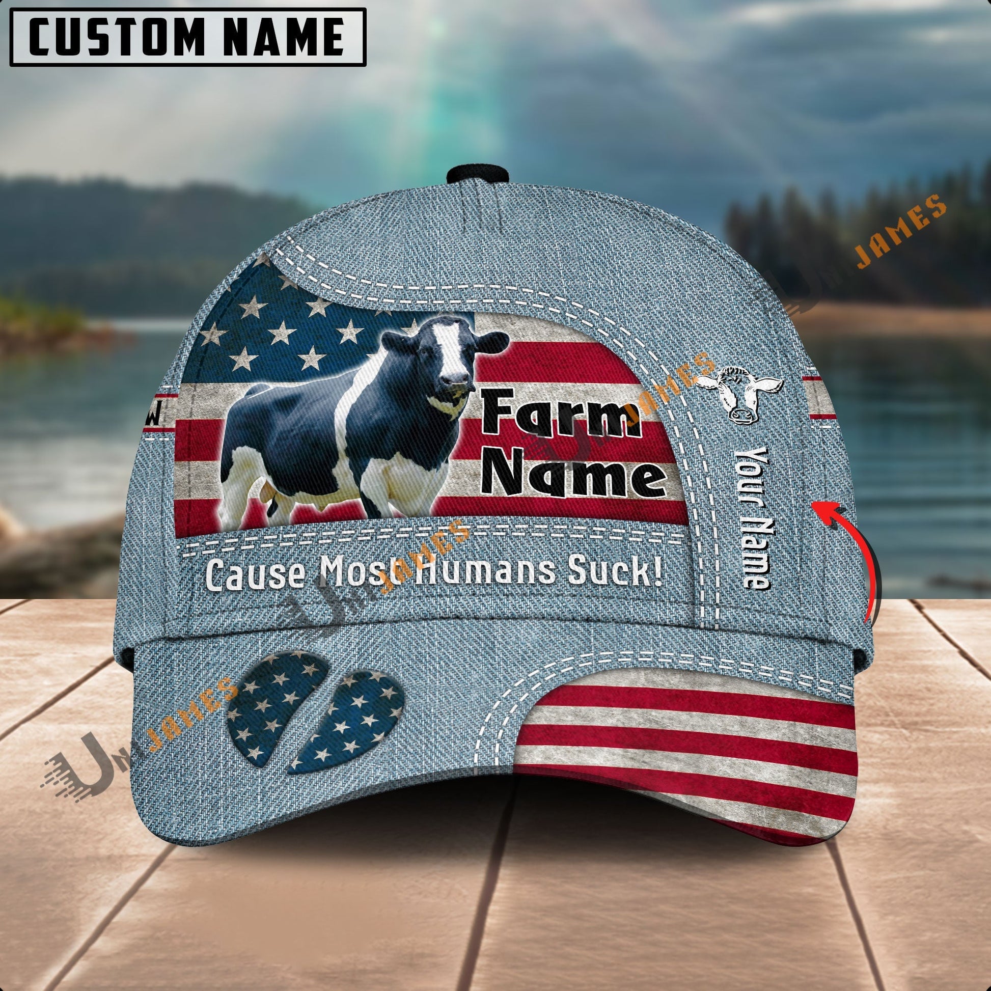 Uni Holstein US Flag Jeans Pattern Customized Name And Farm Name Cap