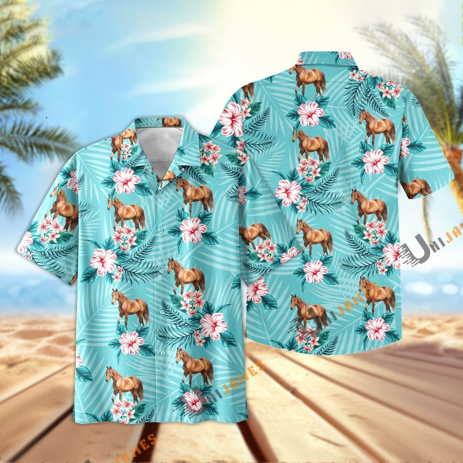 Uni Horse Aloha Cyan Color Hawaiian Shirt