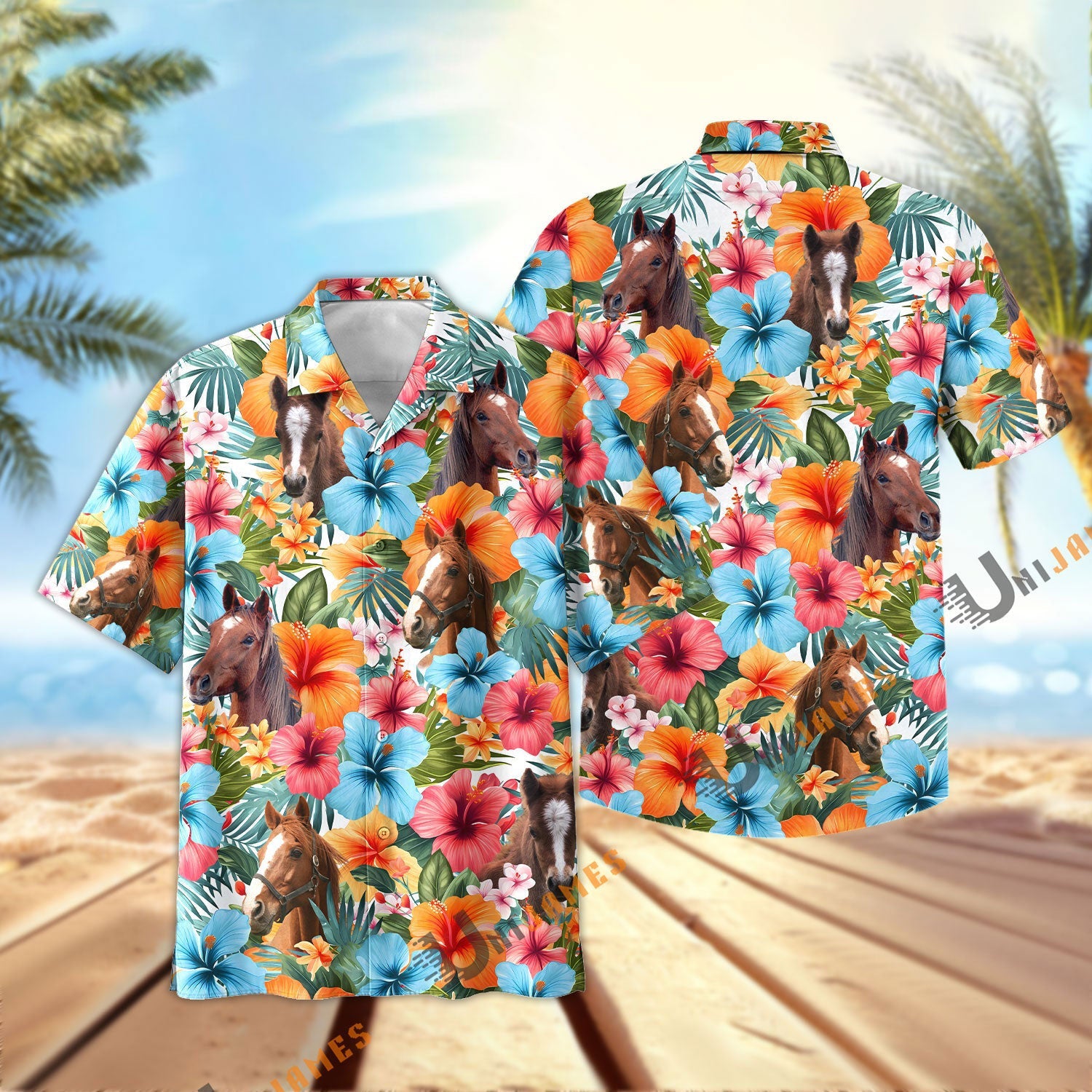 Uni Horse Blue Colorful Summer Pattern Hawaiian Shirt