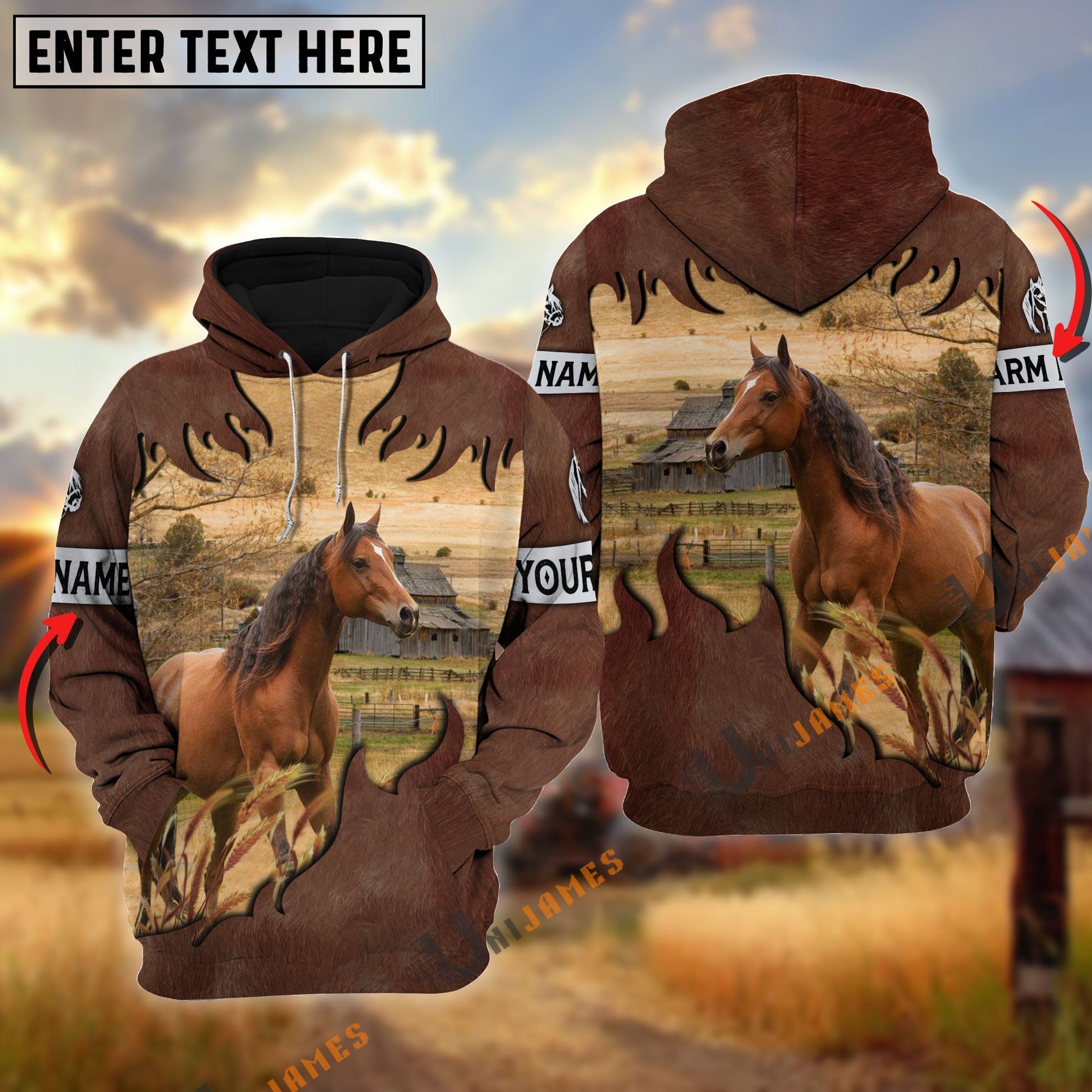 Uni Horse Brown Hair Pattern Personalized Name 3D Hoodie