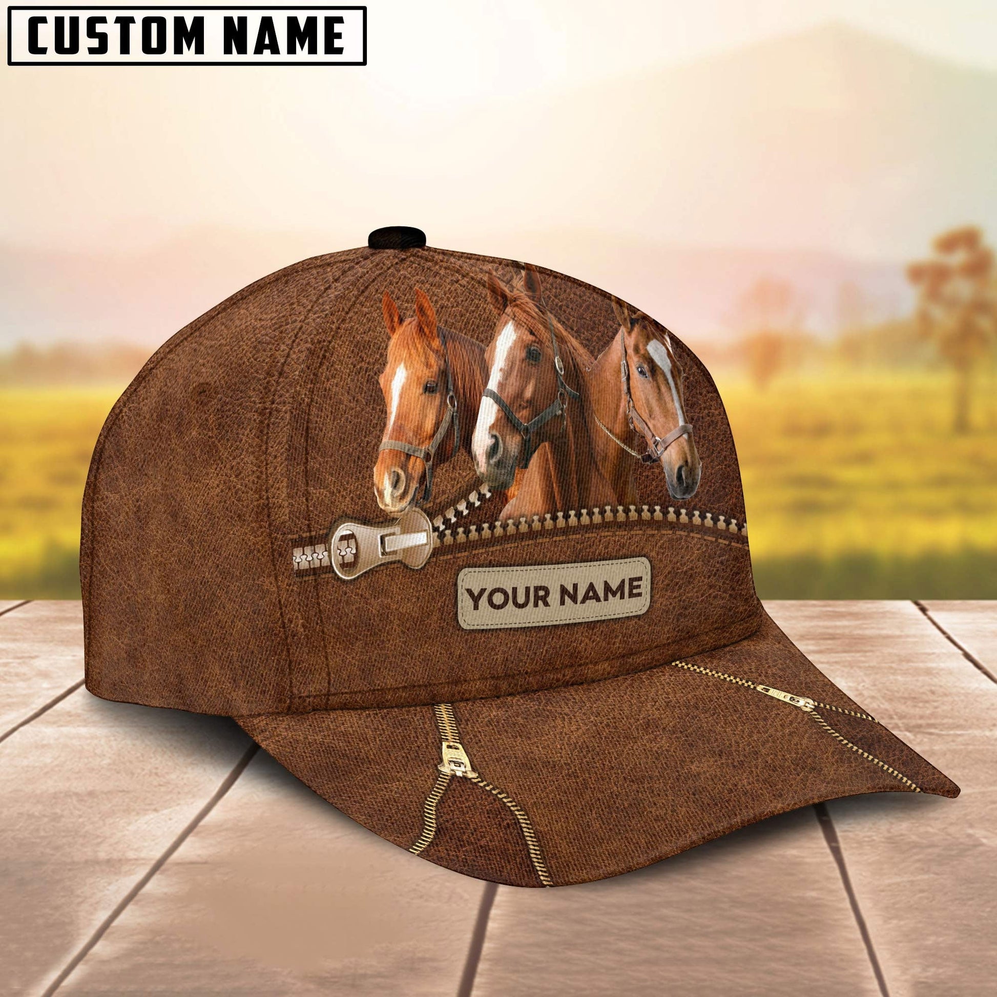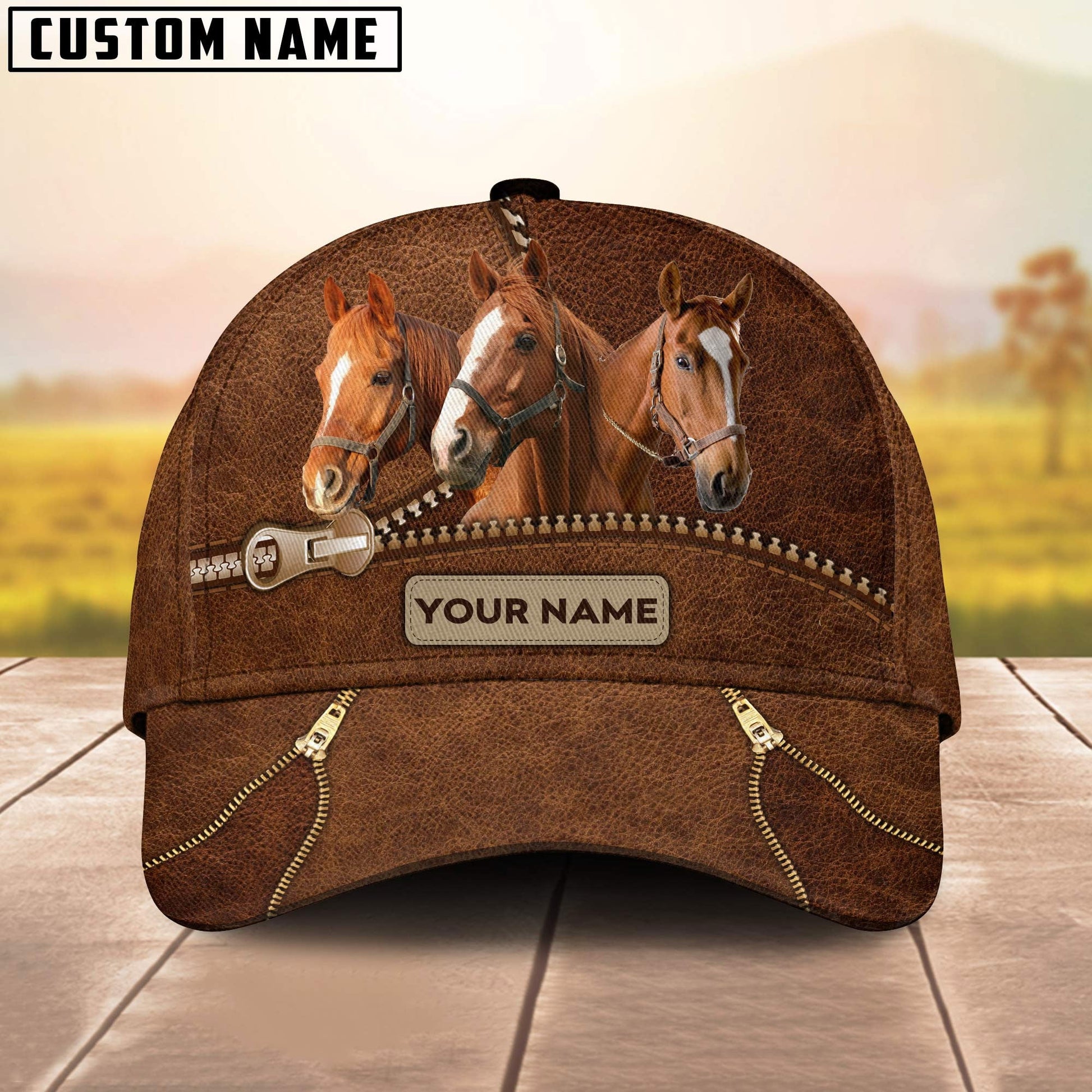 Uni Horse Cattle Zipper Pattern Customized Name Cap