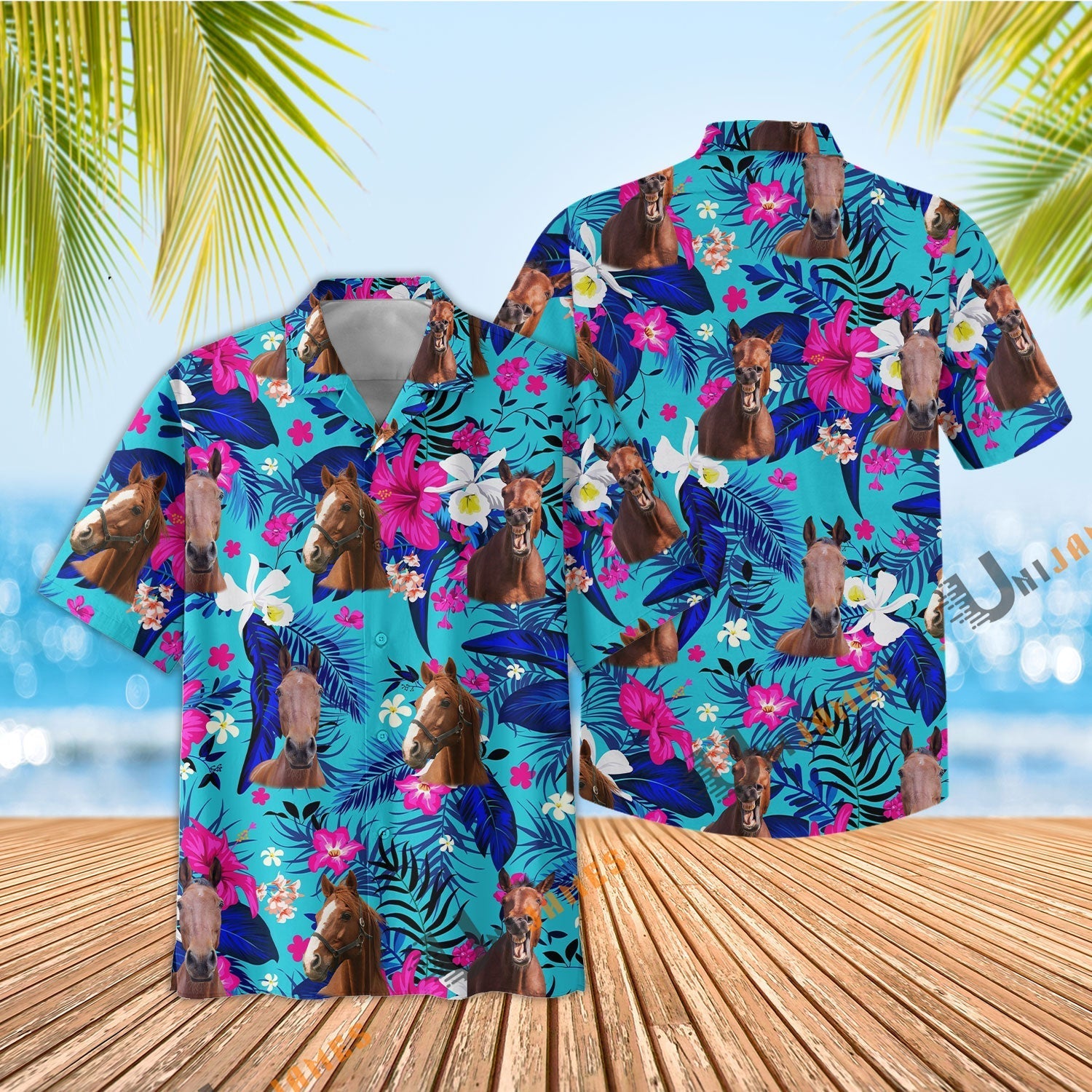 Uni Horse Cool Flower Color Hawaiian Shirt