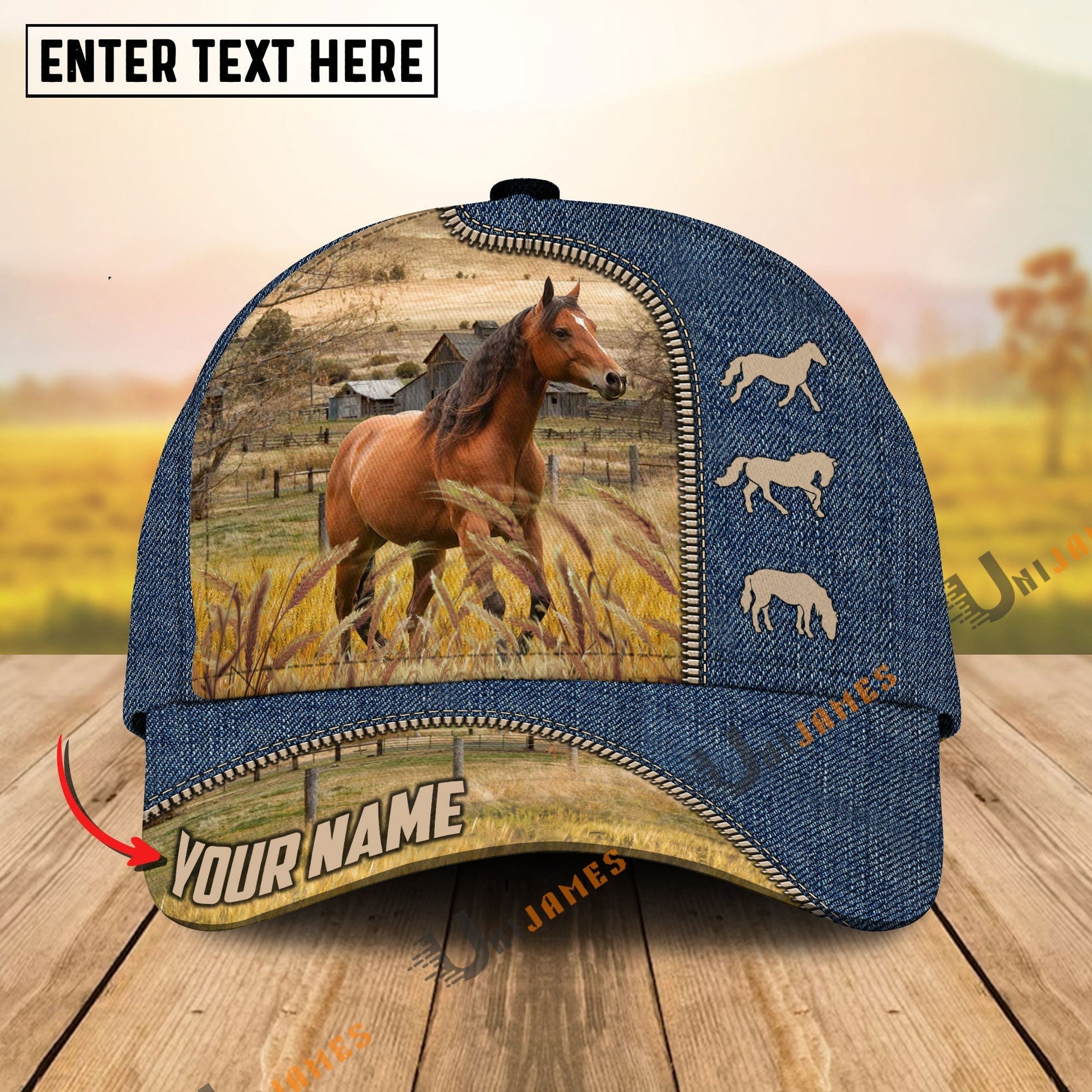 Uni Horse Farm Jeans Pattern Customized Name Cap
